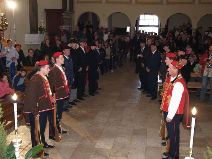 Na Veliki četvrtak dvanaest članova družbe odjevenih u narodnu nošnju sudjeluje u obredu pranja nogu na misi Večere Gospodnje. Nakon mise kao čuvari sudjeluju u prijenosu i pohrani posvećenih hostija zajedno s Presvetim na improvizirani Božji grob u crkvi.