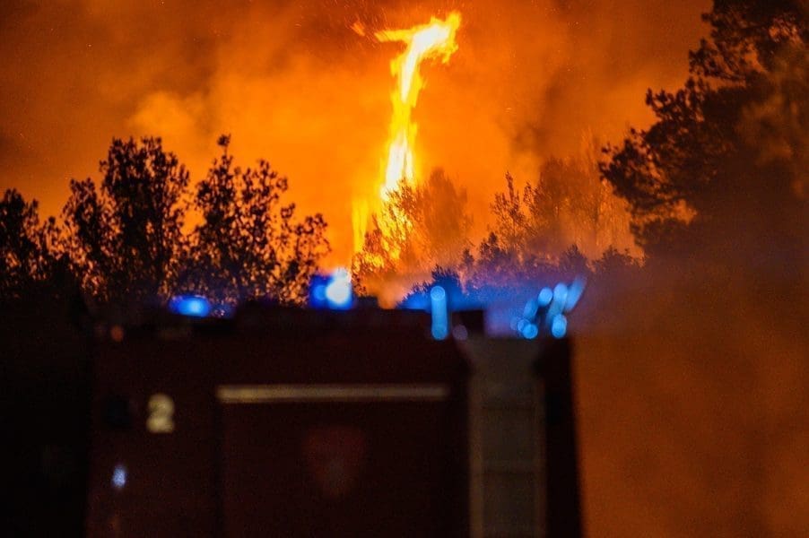 Na terenu s vatrogascima je Morana Baričević, za HTV je javila da požar službeno još nije pod nadzorom, nema otvorenog plamena, vide se samo "žarnice", no situacija je znatno bolja nego što je bila poslijepodne.