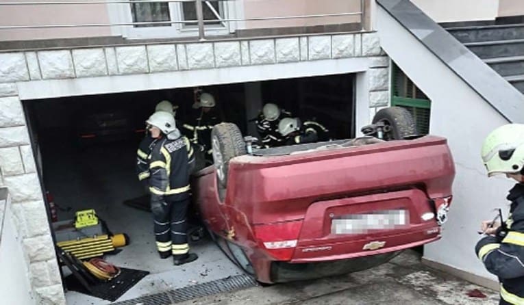 Vozač automobila je izgubio kontrolu nad vozilom i sletio je s ceste na travnatu potvršinu. Potom je uletio u garažu obiteljske kuće gdje je srušio garažna vrata i autom završio na krovu, piše SiB.