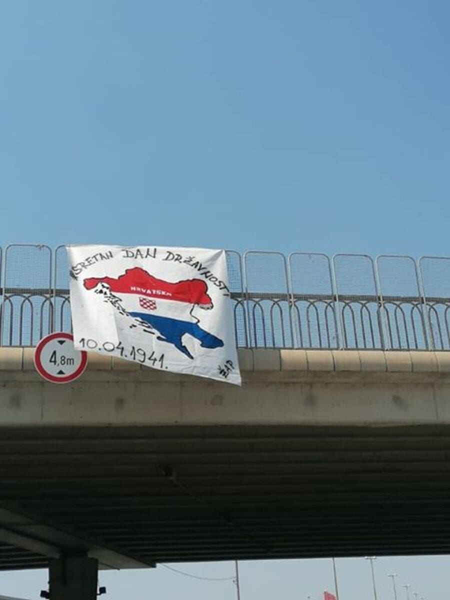 Na brzoj cesti Sirobuja u smjeru Splita danas je izvješen transparent. Preciznije, transparent je osvanuo na nadvožnjaku na Sirobuji.