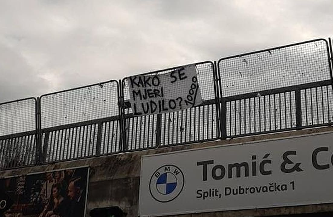 Netko je na ulazu u Split postavio transparent na kojem piše: "Tek smo počeli - 10.000", koji očito upućuje jasne poruke vezane za članstva u ovoj navijačkoj skupini.