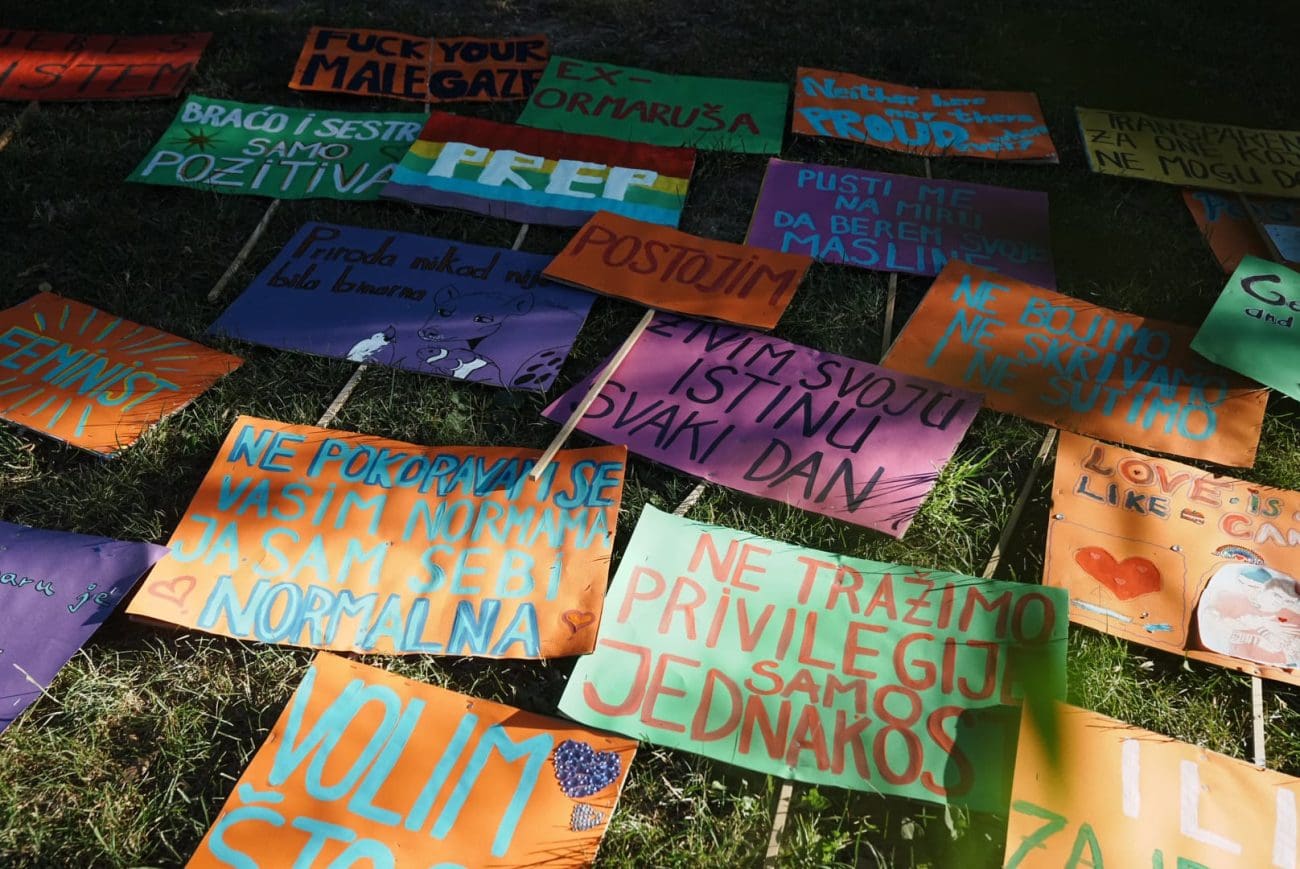 Kao i uvijek, i ove godine su tu i prigodni transparenti. Pogledajte koje poruke su pripremili sudionici Split Pridea.