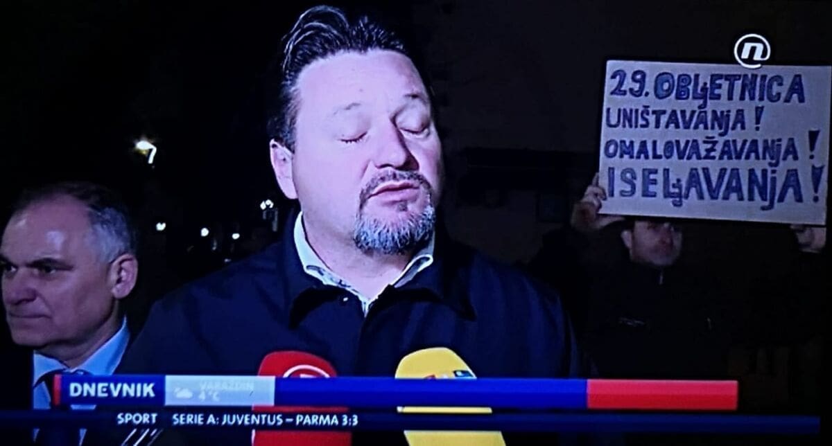 Nakon službene proslave okupljeni su dali izjave za medije što je nepoznata osoba iskoristila da razvije transparent na kojem je pisalo "29. Obljetnica uništavanja, omalovažavanja i iseljavanja". Evo kako je to izgledalo.