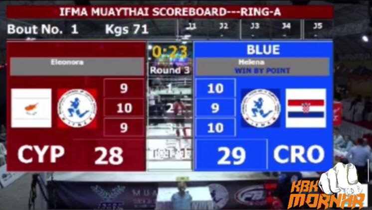 "Nisam pisao objave niti odgovarao na poruke zadnja tri dana radi proživljenog velikog stresa i emocionalnog loma, naime kao što sam već objavio Helena je herojski dobila svoju prvu borbu koja je bila u ponedjeljak 30:27 protiv Eleonore Filippou (Cipar) iako je u drugoj rundi doživjela traumu koljena ali se herojski digla i završila svoj prvi meč svjetskog seniorskog muaythai prvenstva.