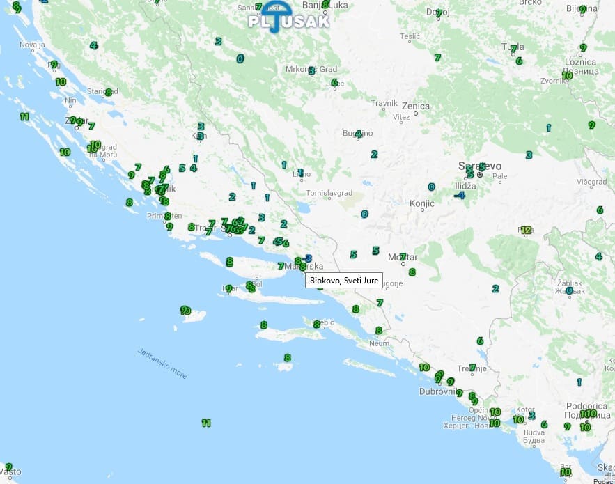 Kako smo već javili, snijeg je zabijelio noćas sve planina i brda Dalmatinske zagore, ali i obalne planine Mosor i Biokovo. Na Biokovu se jutros temperatura spustila na -3°C. Kiša je prvo prešla u tuču, a potom u obilan snijeg. Najviše snijega noćas je palo na Dinari i na Kamešnici.