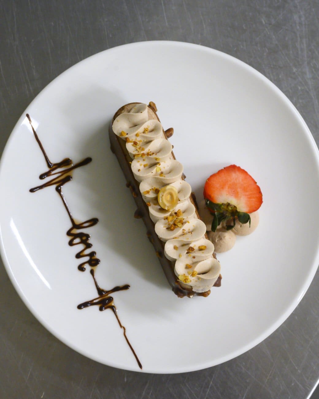 Prvi slijed se sastojao od pažljivo osmišljene selekcije kanapea i tartova za dvoje, a za toplo predjelo studenti su mogli birati između crnog rižota sa sladoledom od sira ili pljukanaca u dalmatinskom šugu. Filet komarče na pireu od graška bio je prava zvijezda glavnog jela, kao i otkošteni punjeni batak sa povrćem sa žara. Za desert posluženo je slatko iznenađenje – popularna kruška te mignion od čokolade za one koji više vole klasične deserte.