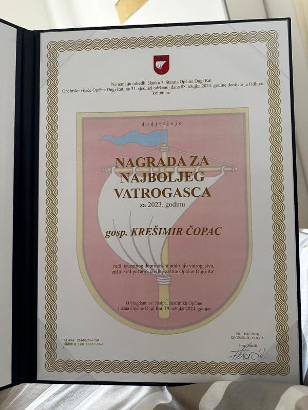 „Momak koji u Dom doleti čim se sirena stisne, momak koji je predan svom vatrogasnom pozivu i uvijek željan pomoći ljudima, momak kojeg je trebalo molit da sa požara ide malo kući odmorit“, emotivnu poruku su nagrađenom vatrogascu uputili iz DVD-a Dalmacija Dugi Rat.