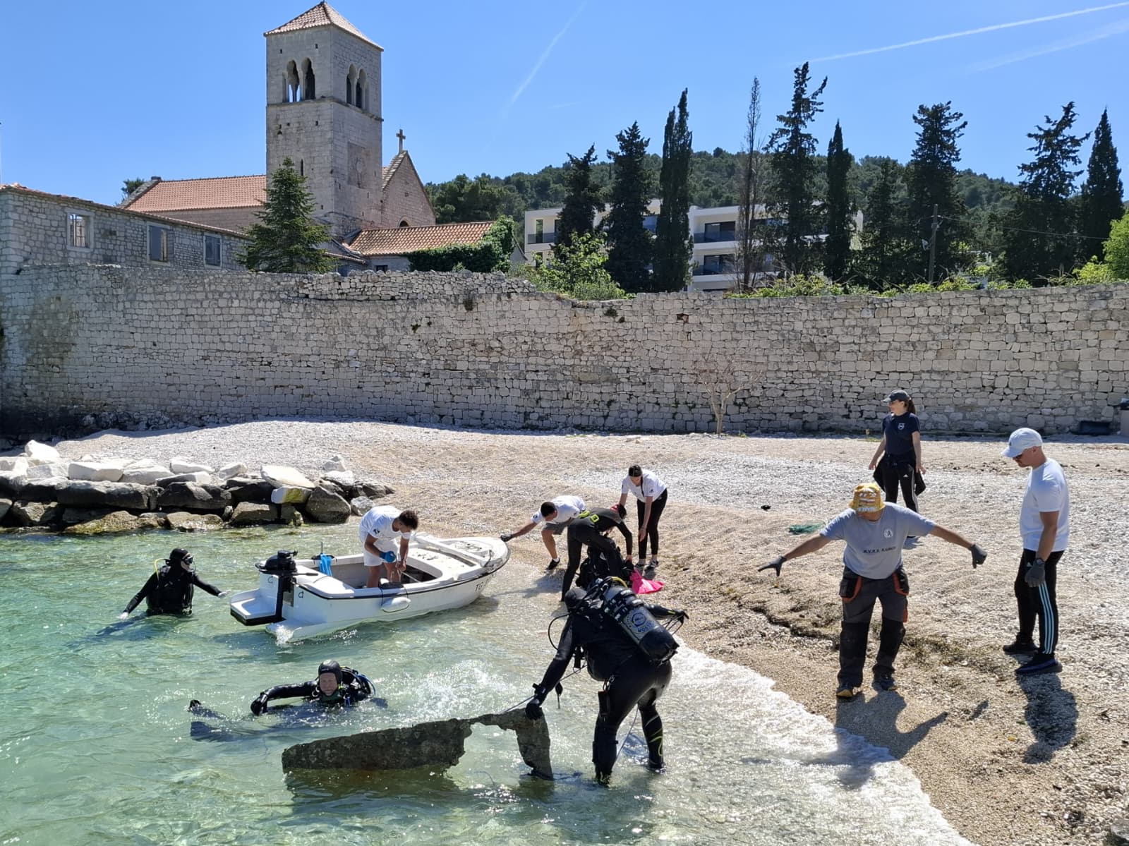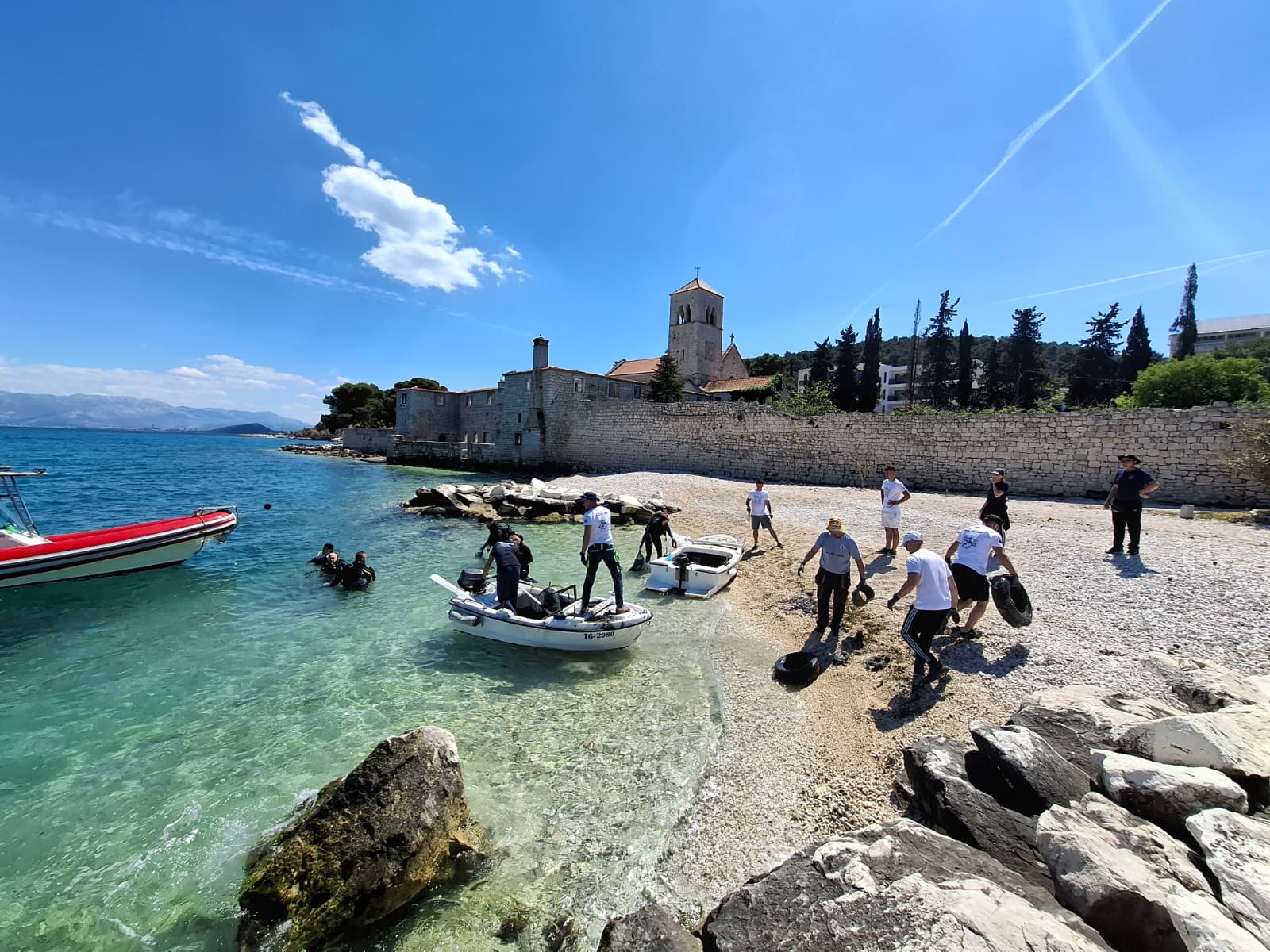 Dok se mi polako spremamo za ljetni šušur, podmorje Čiova – točnije Mastrinke i Arbanije – jučer je prošlo kroz pravu „generalku“. Ispred hotela Sveti Križ održana je prva ovogodišnja velika ronilačko-ekološka akcija čišćenja podmorja u organizaciji Turističke zajednice grada Trogira, Grada Trogira i agencije Seastorm Rental.