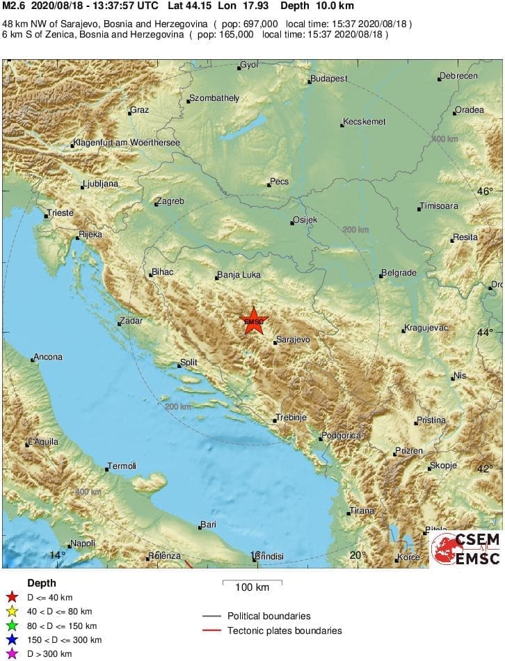 Prema podacima EMSC-a, u utorak u 15 sati i 37 minuta dogodio se slabiji potres na području susjedne Bosne i Hercegovine.