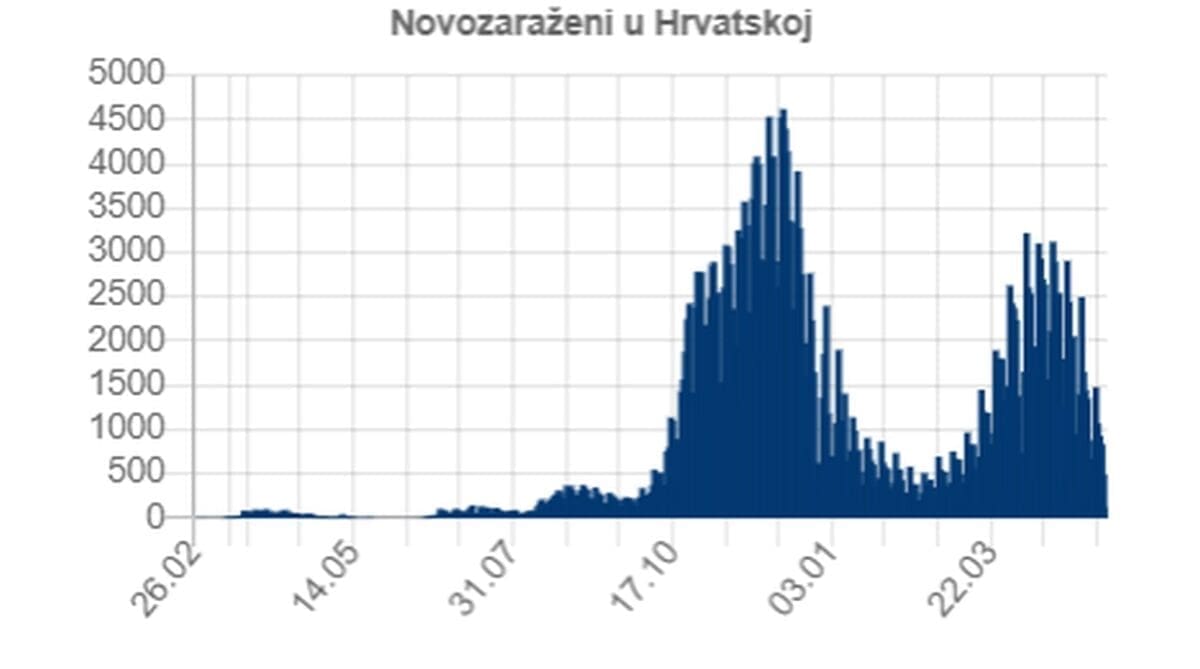 Od 25. veljače 2020., kada je zabilježen prvi slučaj zaraze u Hrvatskoj, do danas je ukupno zabilježeno 350.506 osoba zaraženih novim koronavirusom, od čega 116 u protekla 24 sata.