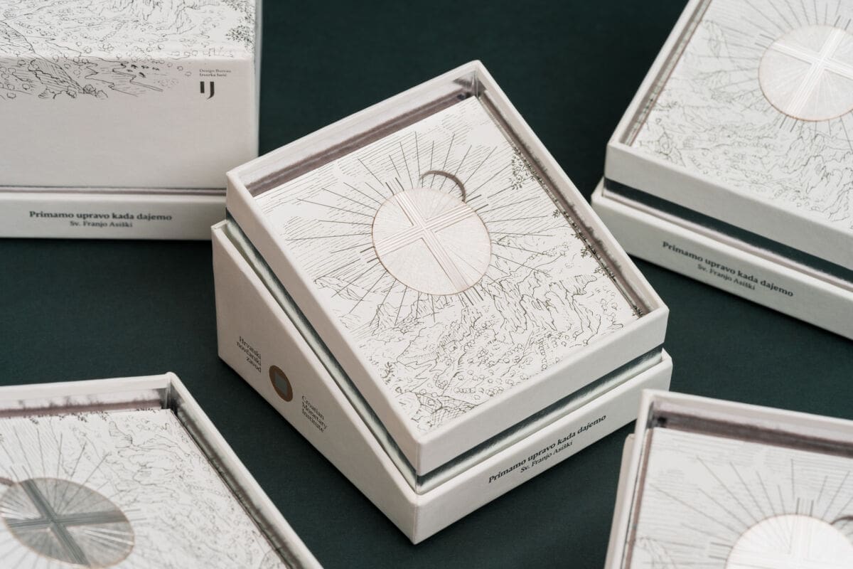 Srebrna medalja “Križ” dar je za različite kršćanske prigode. Medalja s križem suvremene je forme, koja je integrirana s ilustracijom tradicionalnog stila – križ u pejzažu prožet duhovnim iskustvom, zajedno s porukom svetog Franje Asiškog “Primamo upravo kada dajemo.”