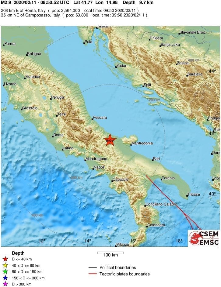 Prema podacima EMSC-a, potres je bio magnitude 2,9 po Richteru. Epicentar mu je bio 35 kilometara sjeveroistočno od grada Campobasso, a osjetio se sa zapadne strane Jadrana.