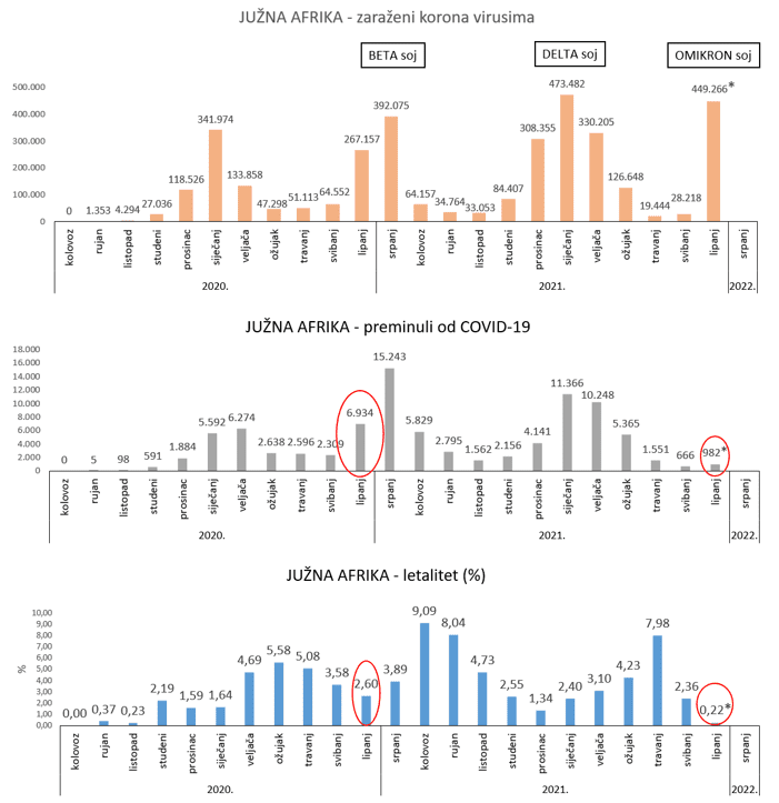 Letalitet (broj preminulih u odnosu na broj zaraženih) u lipnju 2020. bio je 2,60% dok je sada u lipnju 2021. 0,22% što je dvanaest puta manji letalitet. Ovo je nepobitna potvrda slabije virulencije i patogenosti Omikron soja u odnosu na Beta i Delta sojeve u JAR.