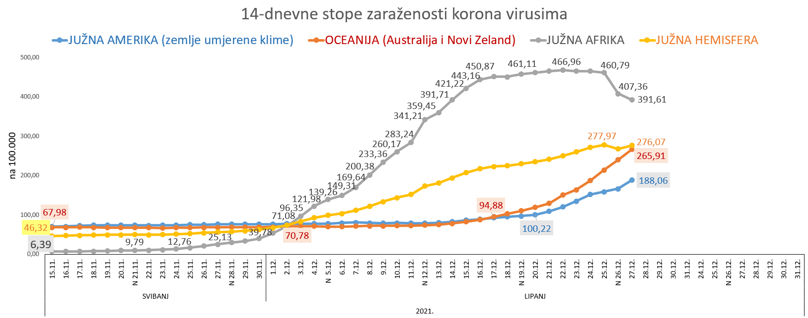 Stoga iznosimo najnovije pokazatelje s nadnevkom od 27. 12. 2021. U JAR to je klimatološki mjesec lipanj i oni su stupili u kalendarsko ljeto koje je izvansezonsko razdoblje respiratornih infekcija.
