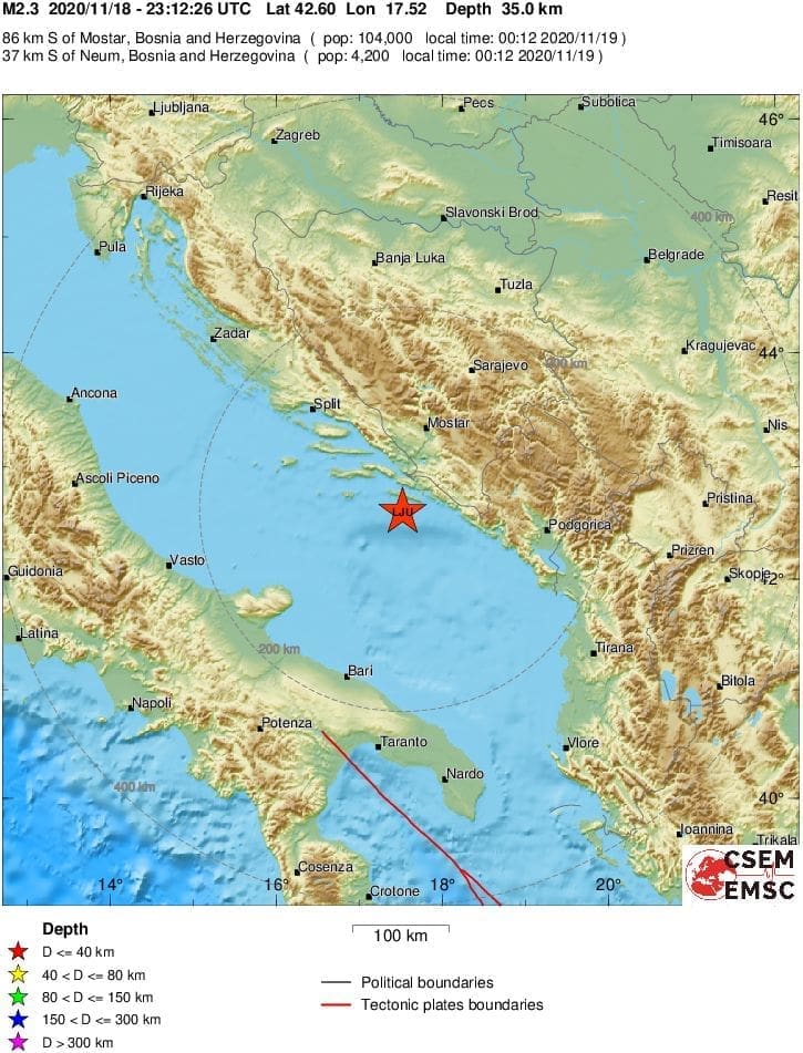 Noćas 12 minuta nakon ponoći dogodio se potres u južnoj Dalmaciji.