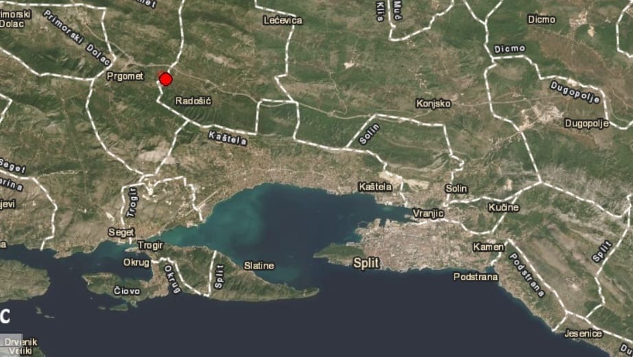 Magnituda potresa bila je 2,4 po Richteru. Epicentar potresa bio je 18 kilometara sjeverozapadno od Splita, između Radošića i Prgometa.