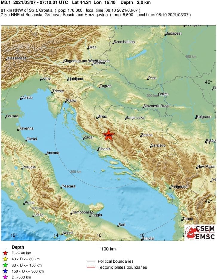Dubina potresa je 2 kilometra, a magnituda 3.1 po Richteru.
