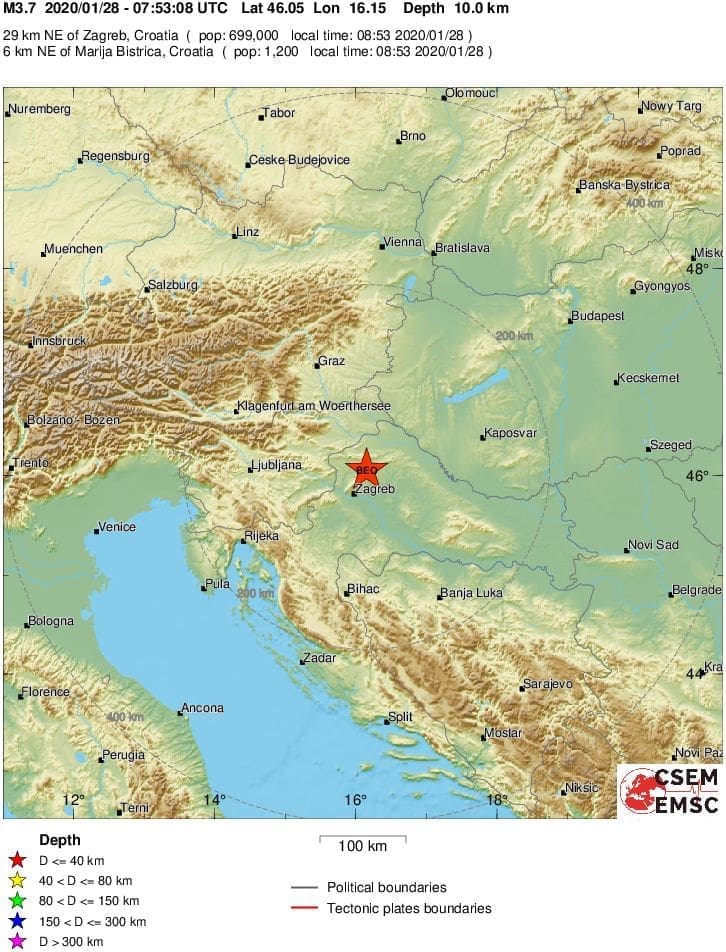 Potres magnitude 3,7 po Richteru pogodio je Zagreb i okolicu u 8 sati i 53 minute.