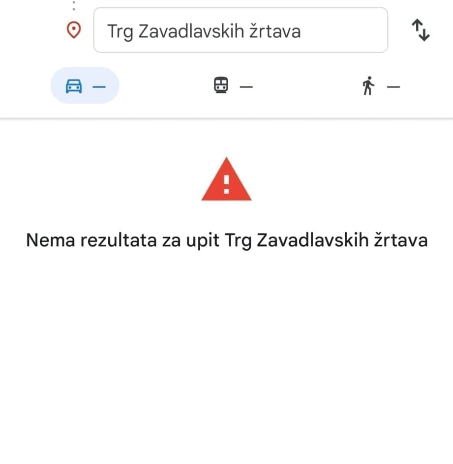 Ipak, iako je na Google karti dodana oznaka, ako pokušate pretražiti novooznačeni Trg ili tražiti uputstva kako doći do njega, nećete pronaći ništa.