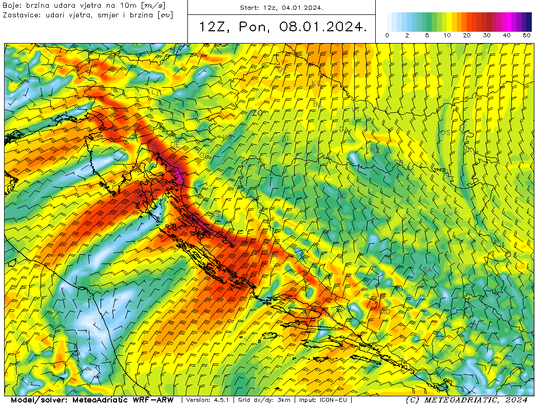 Donosi nam dvodnevno jugo, kišu u subotu, a tek posljednjih sati nedjelje i postupno zahlađenje u Dalmaciji. Bit će to uvod u znatno hladniji sljedeći tjedan koji donosi primjerene siječanjske temperature, ali o bilo kakvoj posebnoj hladnoći ili snijegu u Dalmaciji nema govora. Ipak, bit će to konačan kraj dugotrajne i nezdrave topline.