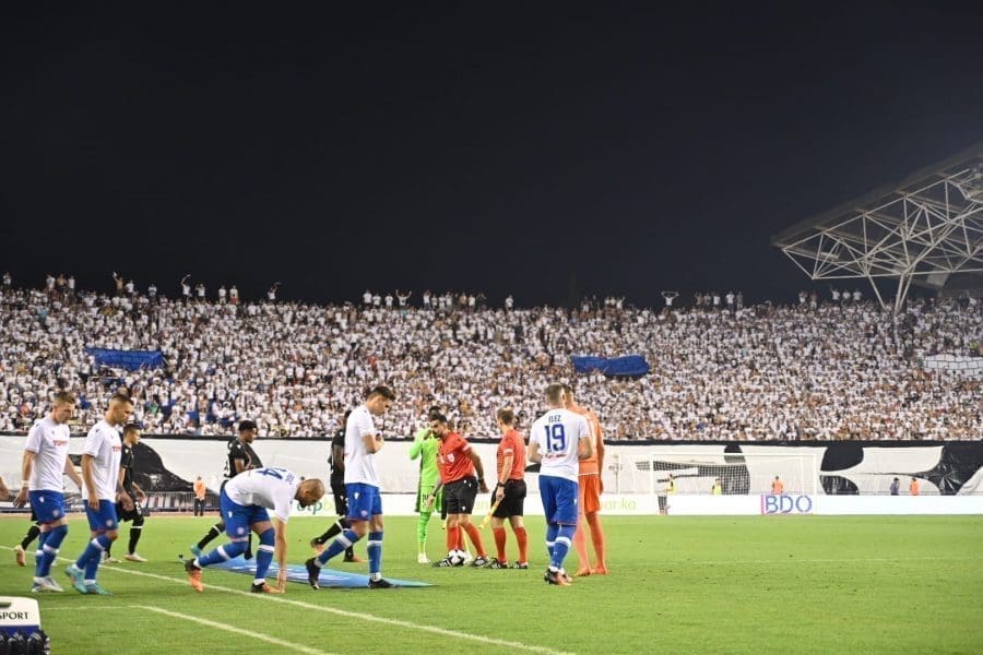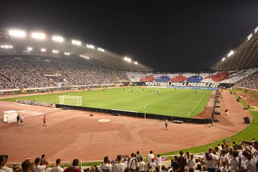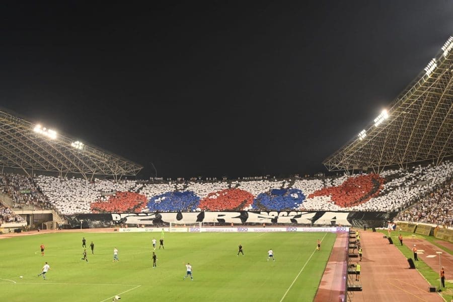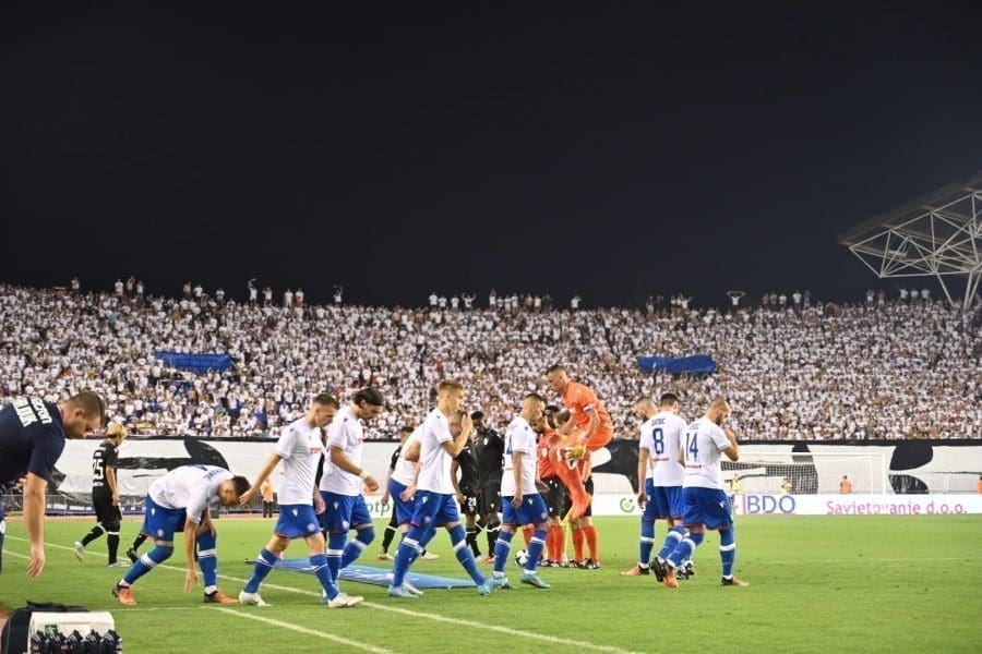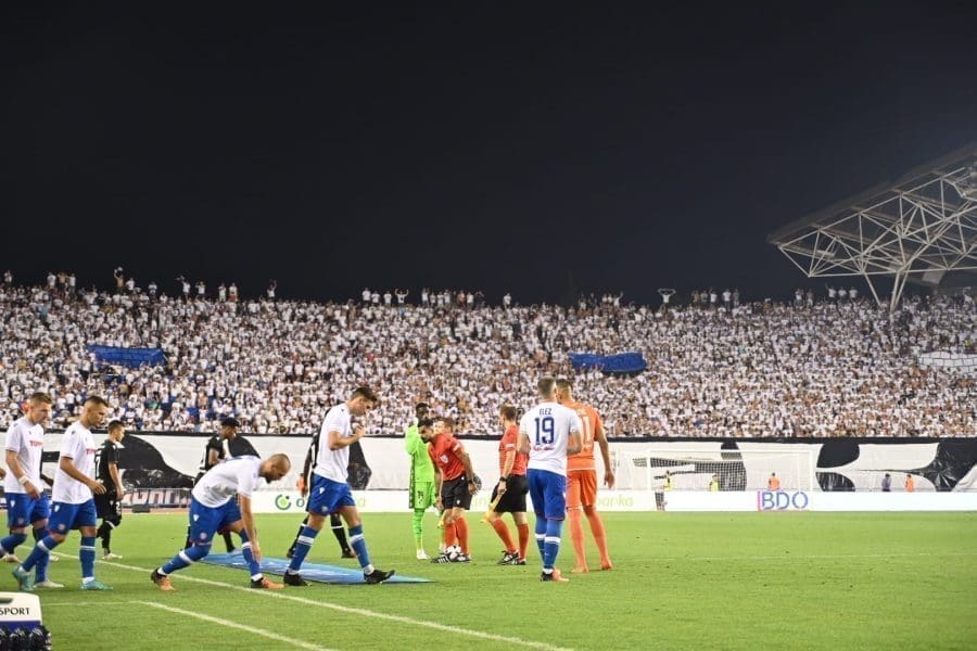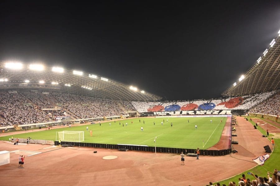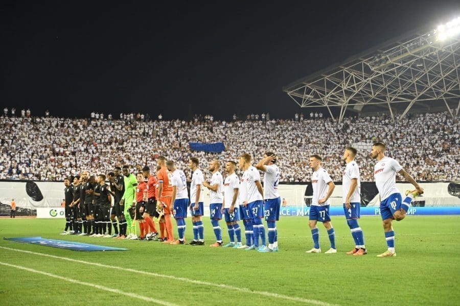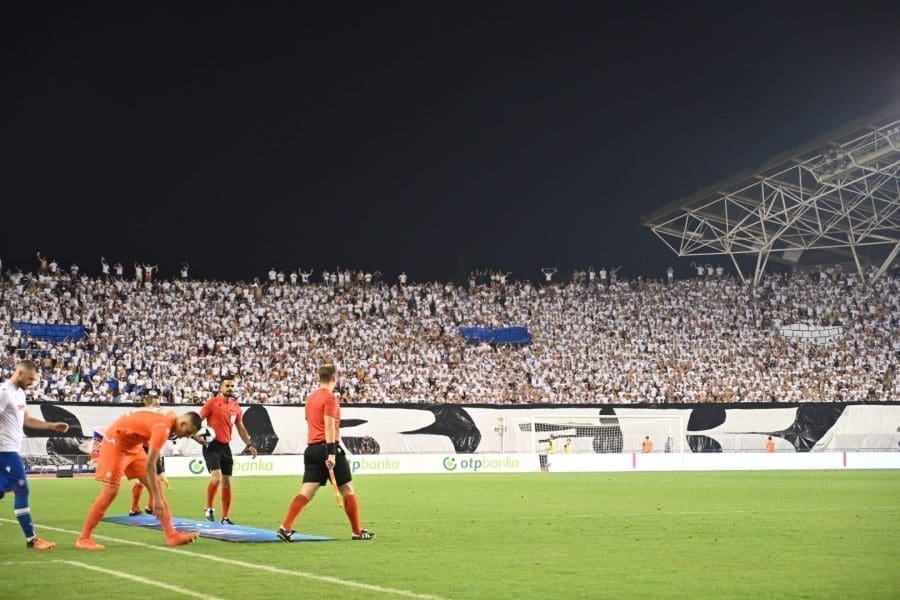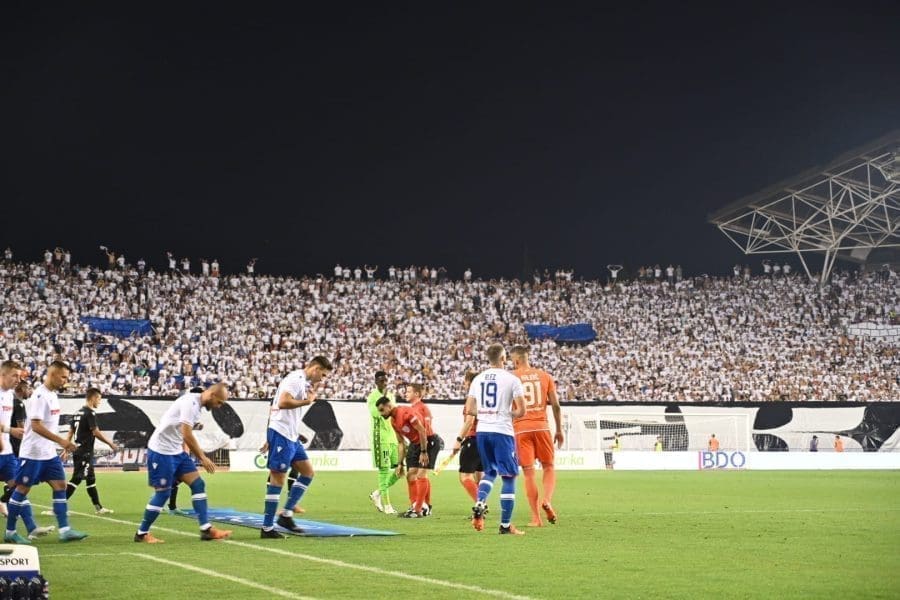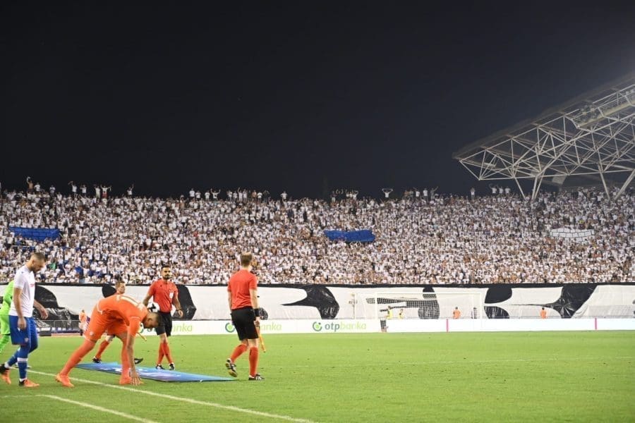 Hajduk i Vitoria Guimaraes igraju na Poljudu u prvoj utakmici trećeg pretkola Konferencijske lige. Utakmica je započela u 21 sat, a već se danima prije znalo da je Poljud je za utakmicu s Portugalcima rasprodan.