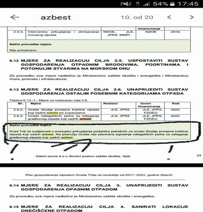 - Zbog čega studija o azbestu u Nacrtu plana gospodarenja otpadom grada Trilja za razdoblje od 2017. – 2022. godine?