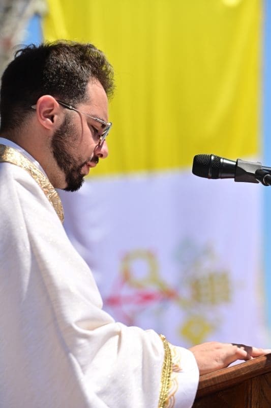 Voditelj misnog slavlja bio je don Šimun Doljanin, a propovjednik fra Kristijan Stipanović. Na igralištu se okupilo mnoštvo vjernika, velik broj svećenika i časnih sestara kako bi svojoj nazočnošću uveličali ovaj današnji događaj.