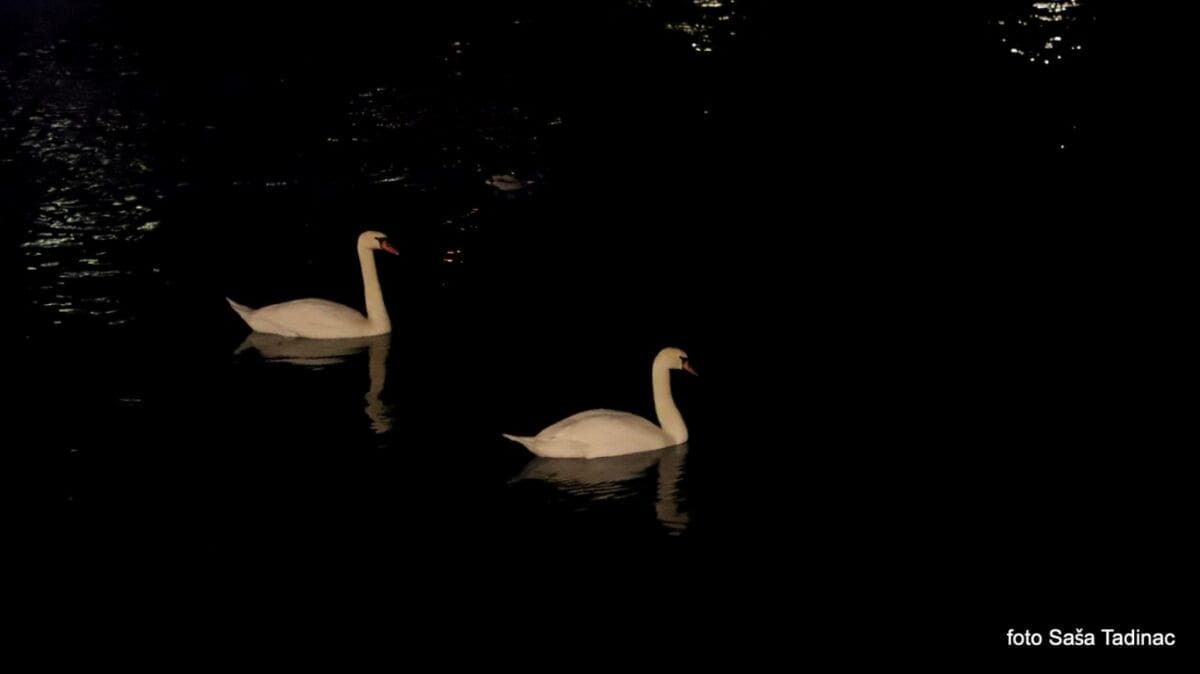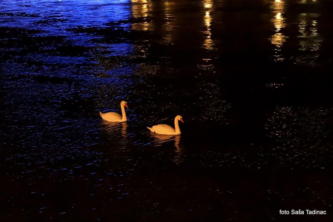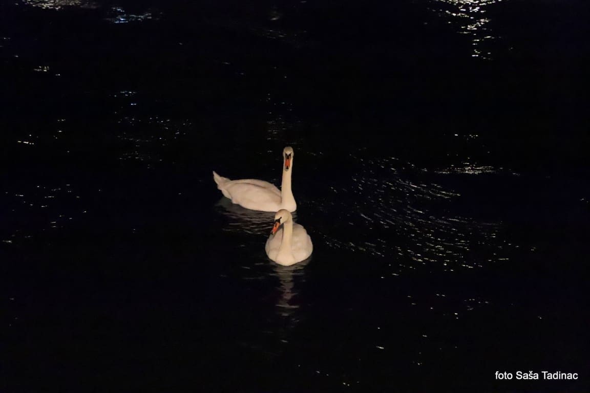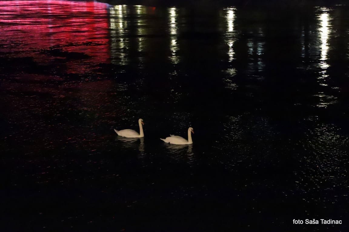 Triljskom fotografu u utorak navečer "pozirala" su dva zaljubljena labuda. Kao da su promatrali proces ukrašavanja grada i mosta.