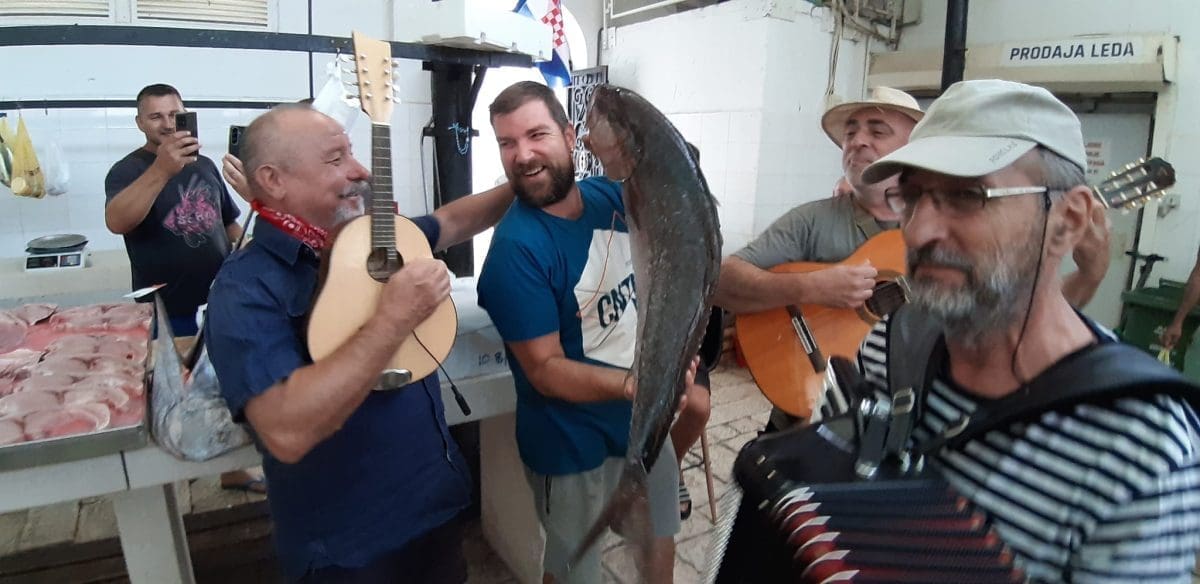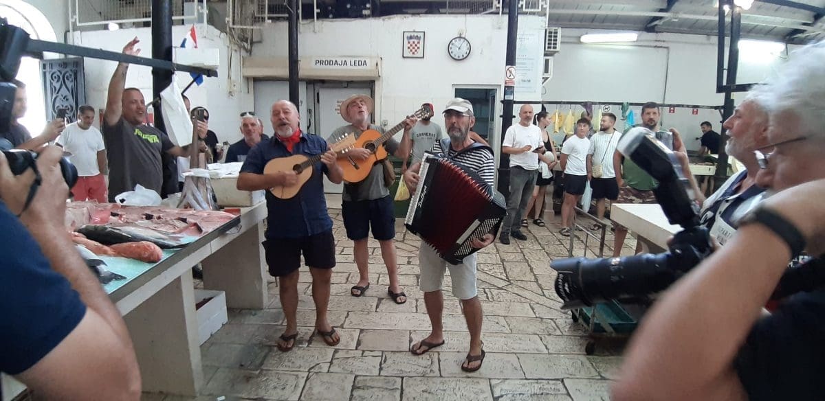 Oni koji su jutros došli na splitsku Peškariju dobili su predivno iznenađenje. Odjednom je među štandove došao sastav Trio Gušt.