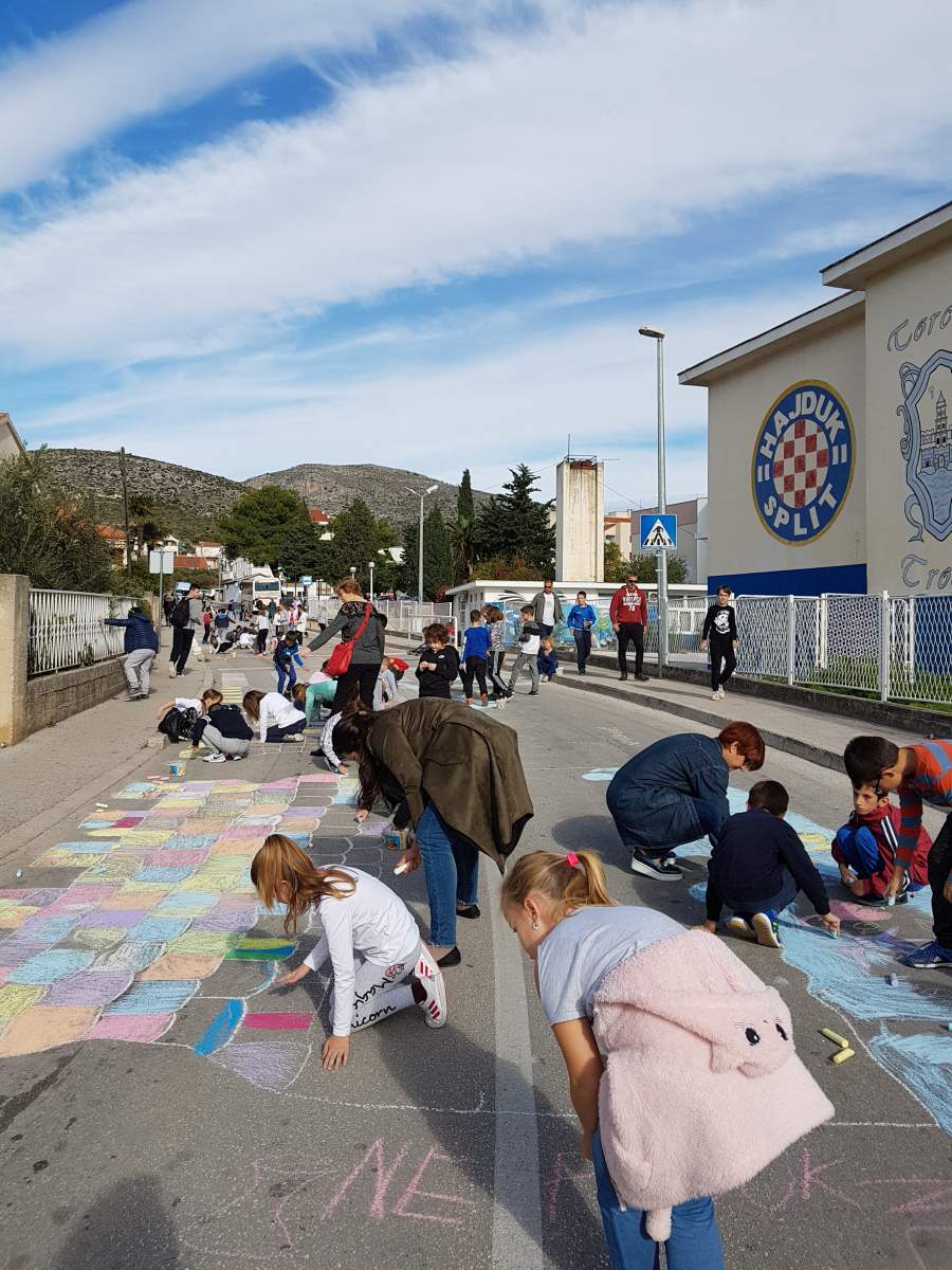 „Naša škola treći put na ovaj način obilježava Mjesec borbe protiv alkoholizma i drugih ovisnosti. Ove godine smo se odučili za motive grada jer se projektna aktivnost održava neposredno nakon Dana grada Trogira. Uz nastavne teme koje se obrađuju u školi vezane uz ovisnost i ono najvažnije, jačanje samopouzdanja kod učenika, ovo je jedna lijepa inicijativa kojom učenici upozoravaju vozače da ne sjedaju za volan u alkoholiziranom stanju. Također, učenici ukazuju na to da su i oni stalni sudionici u prometu te da se u našoj ulici nalaze dvije škole, osnovna i srednja što je razlog više vozačima da prilagode svoju vožnju na ovom području i budu oprezniji. Moram napomenuti kako u vrijeme interneta i svih čuda tehnologije veseli činjenica što se djeca raduju igranju na svježem zraku. Jedva su dočekali.“
