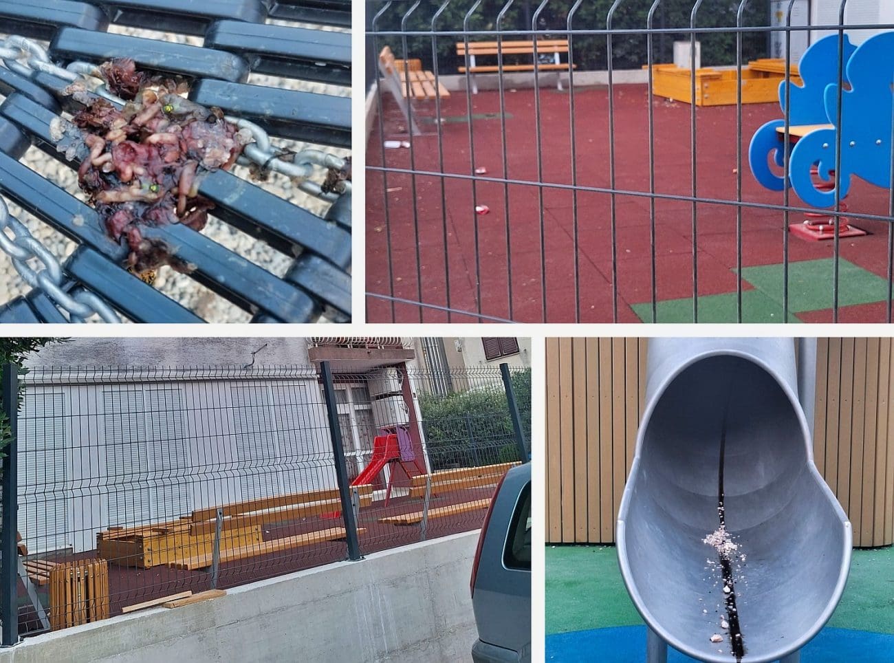 – Na malom vrtićkom igralištu razbijeno je staklo, limenke, smeće. A na velikom igralištu netko je bacio iznutrice na ljuljačku, a u veliki tobogan ulio neku masnu tekućinu, možda ulje ili benzin. Sve smrdi, a dica su ugrožena – kaže nam ogorčena Trogiranka.