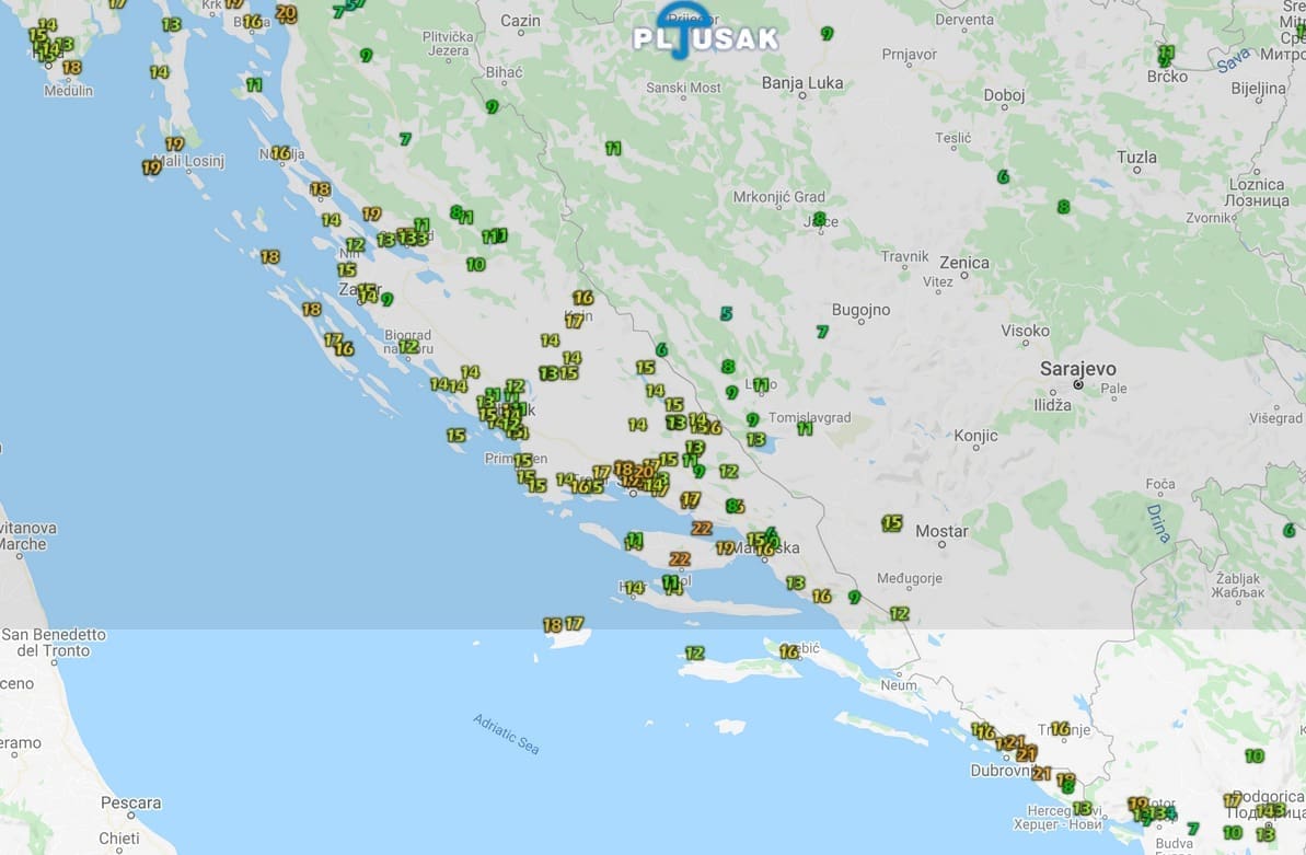 Podsjetimo, najviše dnevne temperature zraka u petak bile su do čak 28 Celzijevih stupnjeva, koliko je izmjereno u Senju. U Kninu je bilo 27°C, Zadru 26°C, Splitu 24°C...