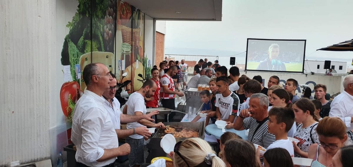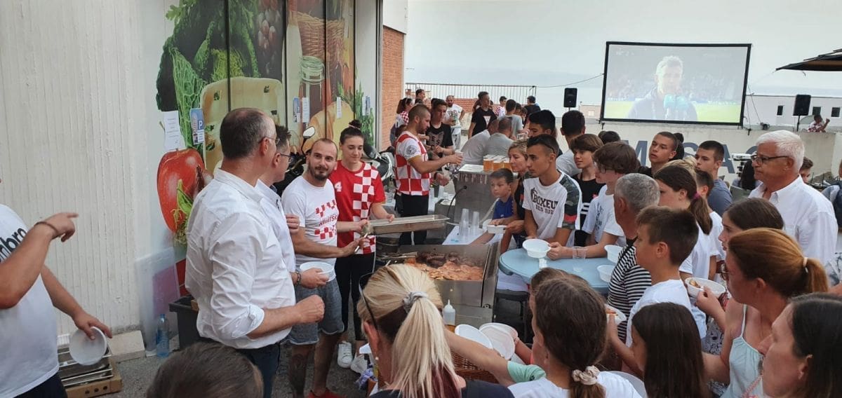 Nakon toga preko velikog video zida emitirana je utakmica Hrvatska - Škotska, a nakon pobjede i plasmana Vatrenih u osminu finala nije nedostajalo fešte.
