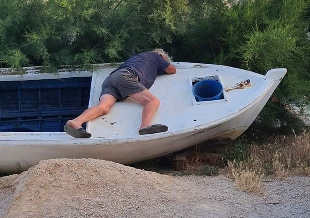 Upravo je tako opisana fotografija objavljena na satiričnoj Facebook stranici Dnevna doza prosječnog Dalmatinca. Na njoj se vidi muškarac koji je prilegao na pramcu broda izvučenog na kopno.