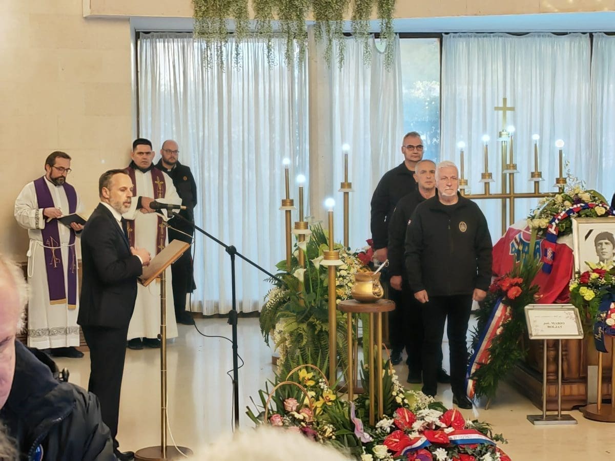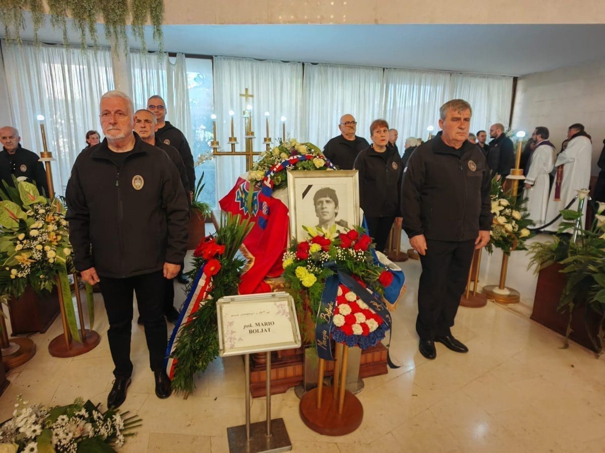 Mario Boljat, prekriven hrvatskom trobojnicom i šalom Hajduka, ostavio je neizbrisiv trag u klubu, pridonoseći osvajanju sedamdesetih godina četiri prvenstva i pet kupova. U ime Udruge Veterana Domovinskog rata 158. brigade i 6. Domobranske pukovnije Hrvatske vojske, oprostili su se predsjednik udruge, umirovljeni bojnik Ivica Bubić.