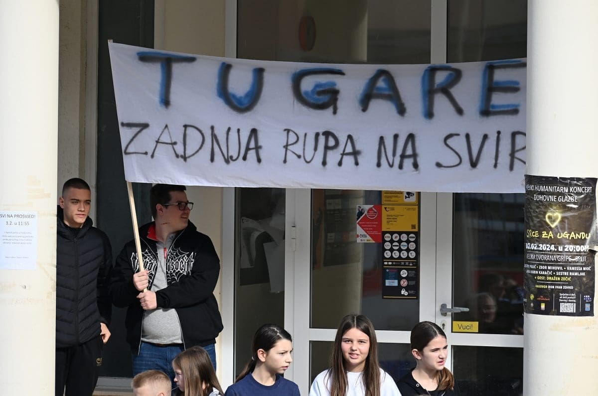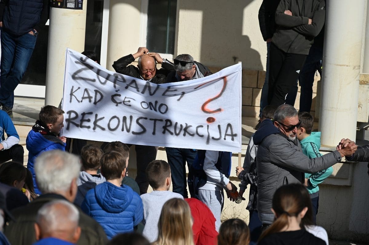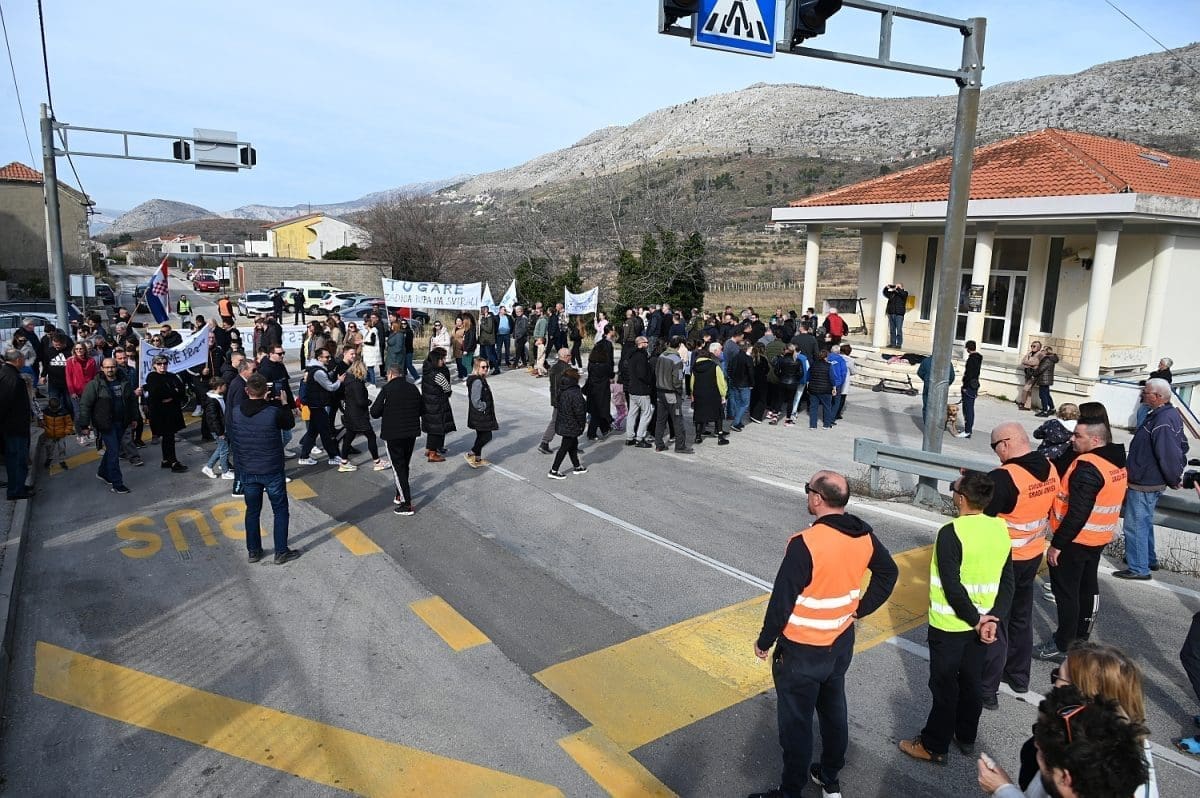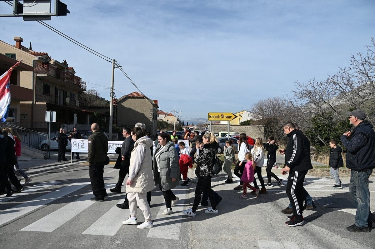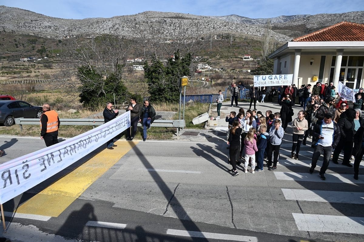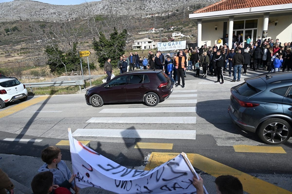 Više od sto ljudi sudjelovalo je na mirnom prosvjedu kod osnovne škole u Tugarama i to tako da su prelazili pola sata preko pješačkog prijelaza, onemogućavajući tako sav promet.