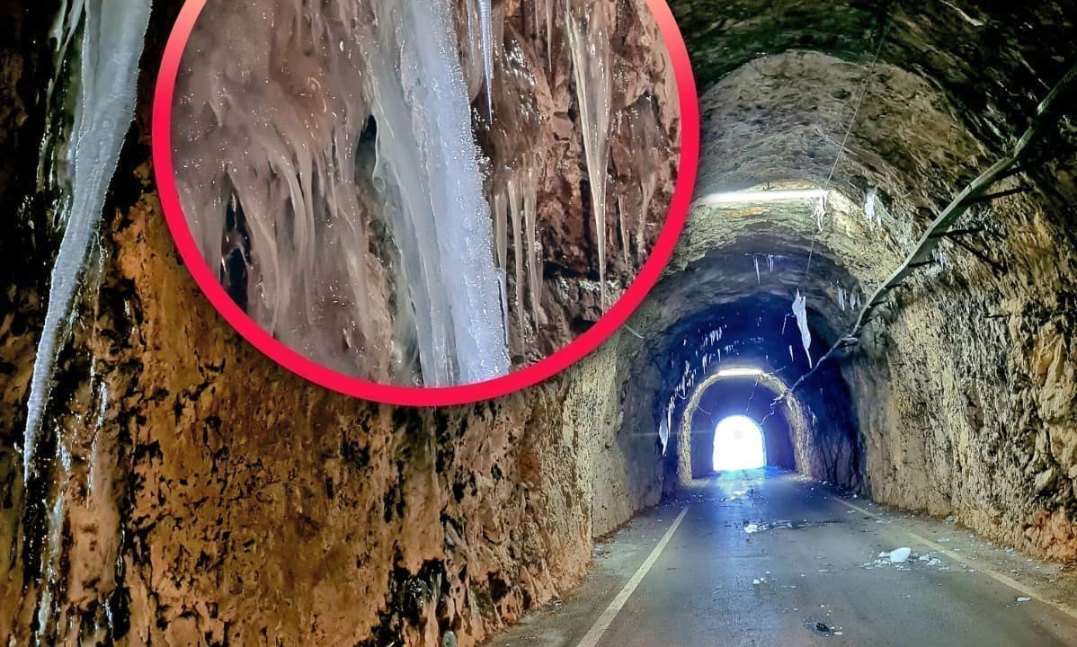 Ledene sige vise sa svoda tunela, a pojedini su dugački preko pola metra te predstavljaju opasnost kako po automobile tako i putnike u njima.