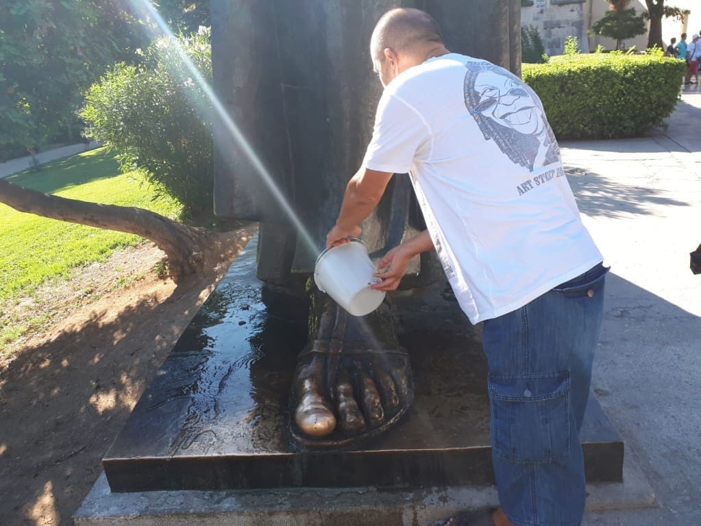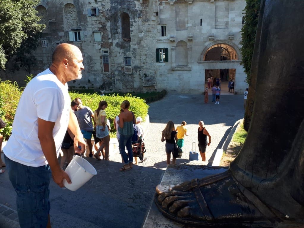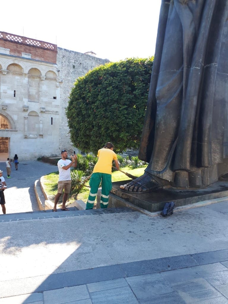 Splitska policija zaprimila je danas dojavu da je ženska osoba izlila kantu izmeta na kip Grgura Ninskog. Sve se odigralo u poslijepodnevnim satima, oko 16 sati, a nakon svega je žena odvedena na pružanje liječničke pomoći.