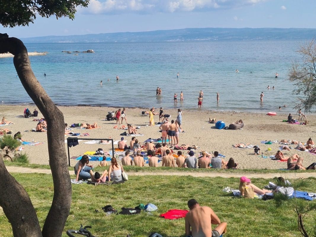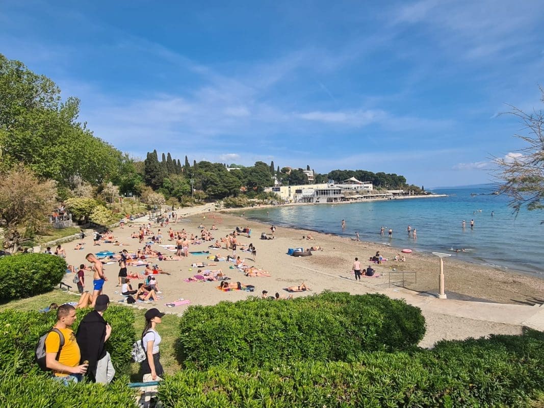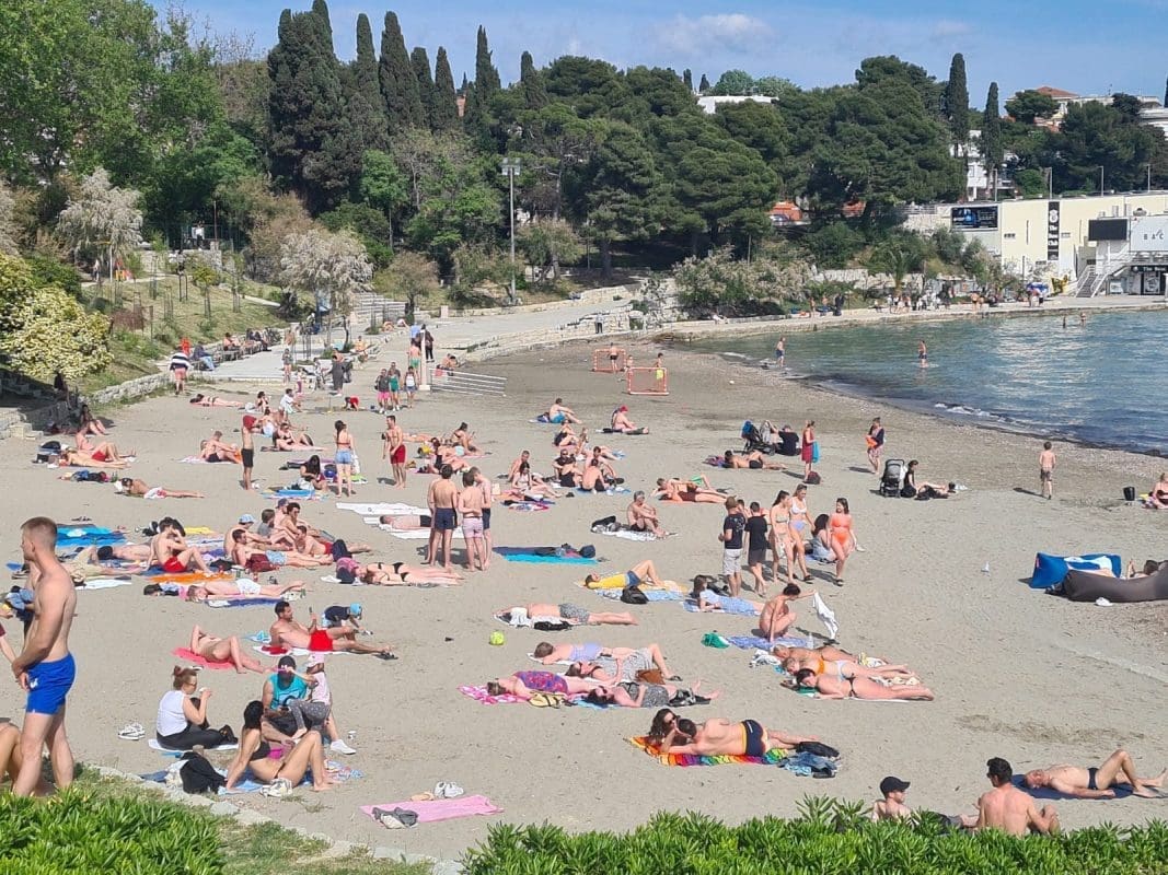 Splitske Bačvice danas su bile pune, turisti su na svakom koraku, a plaža je poprilično ispunjena.