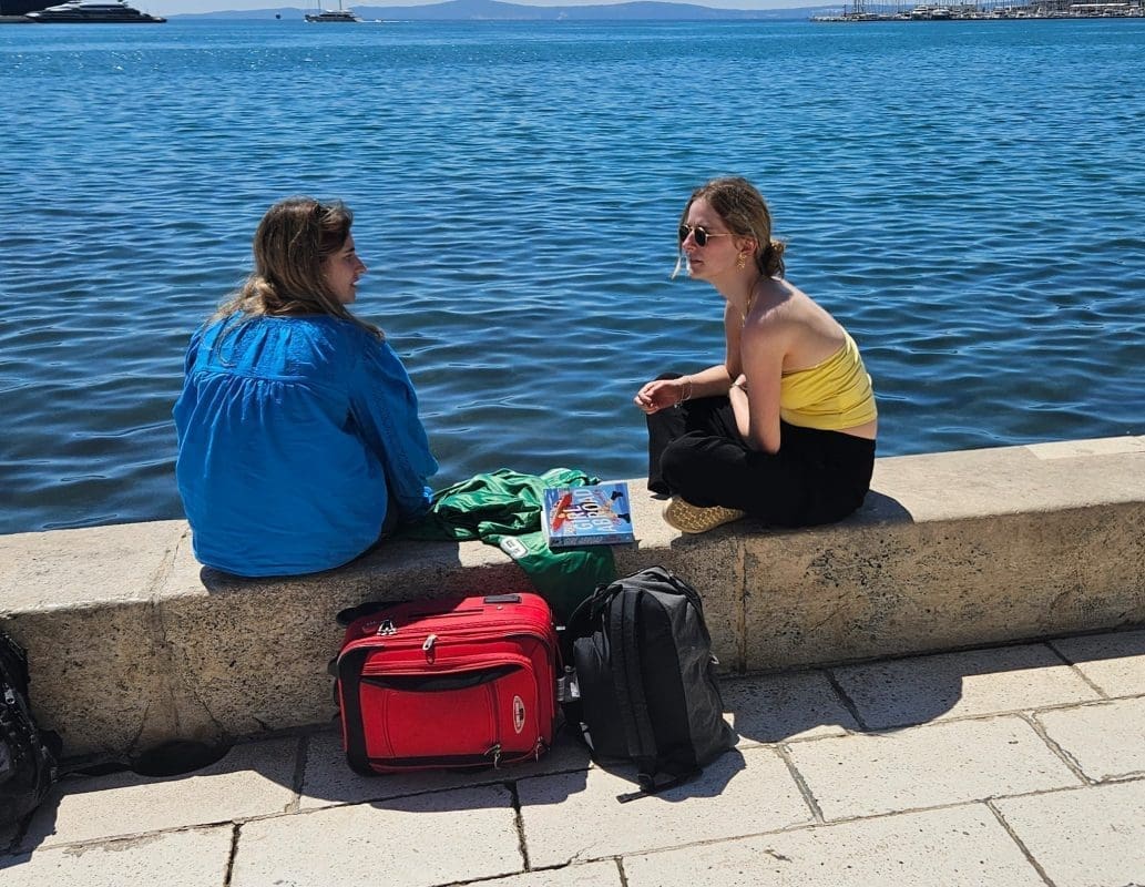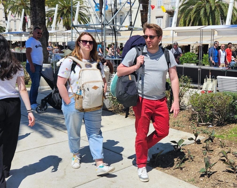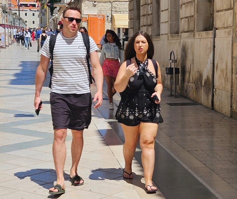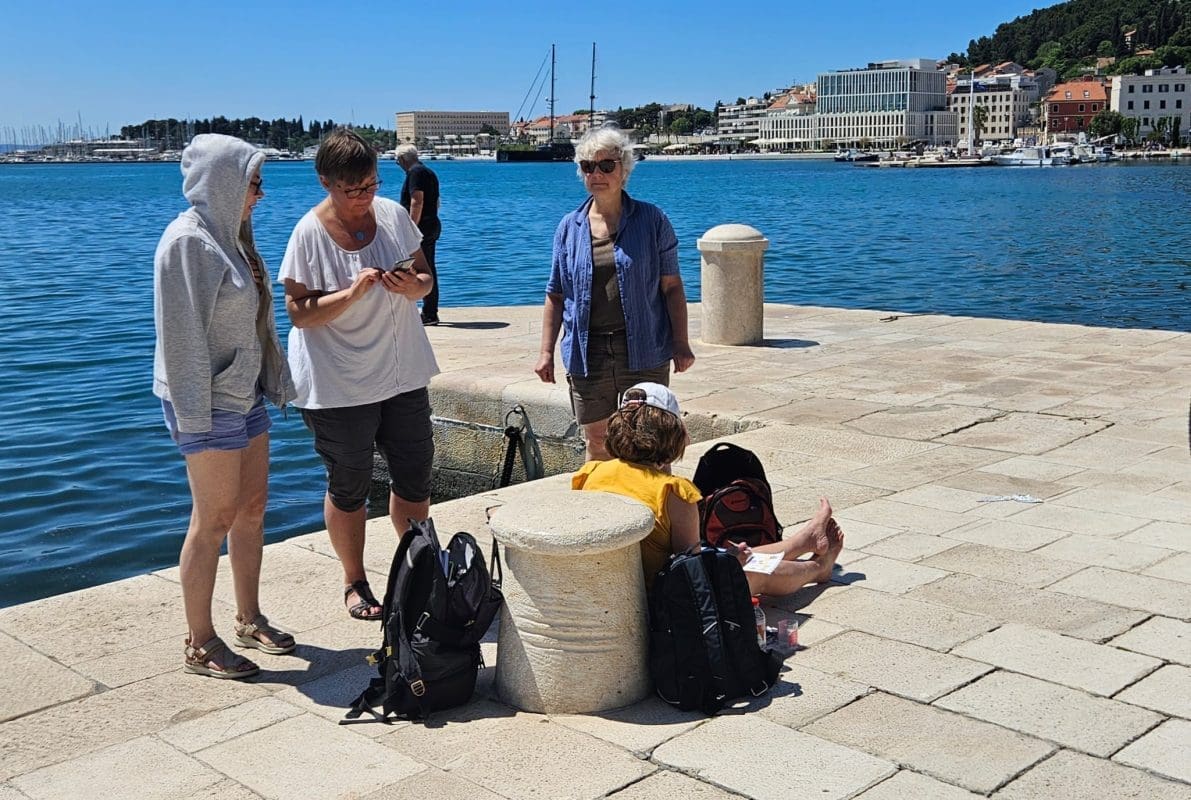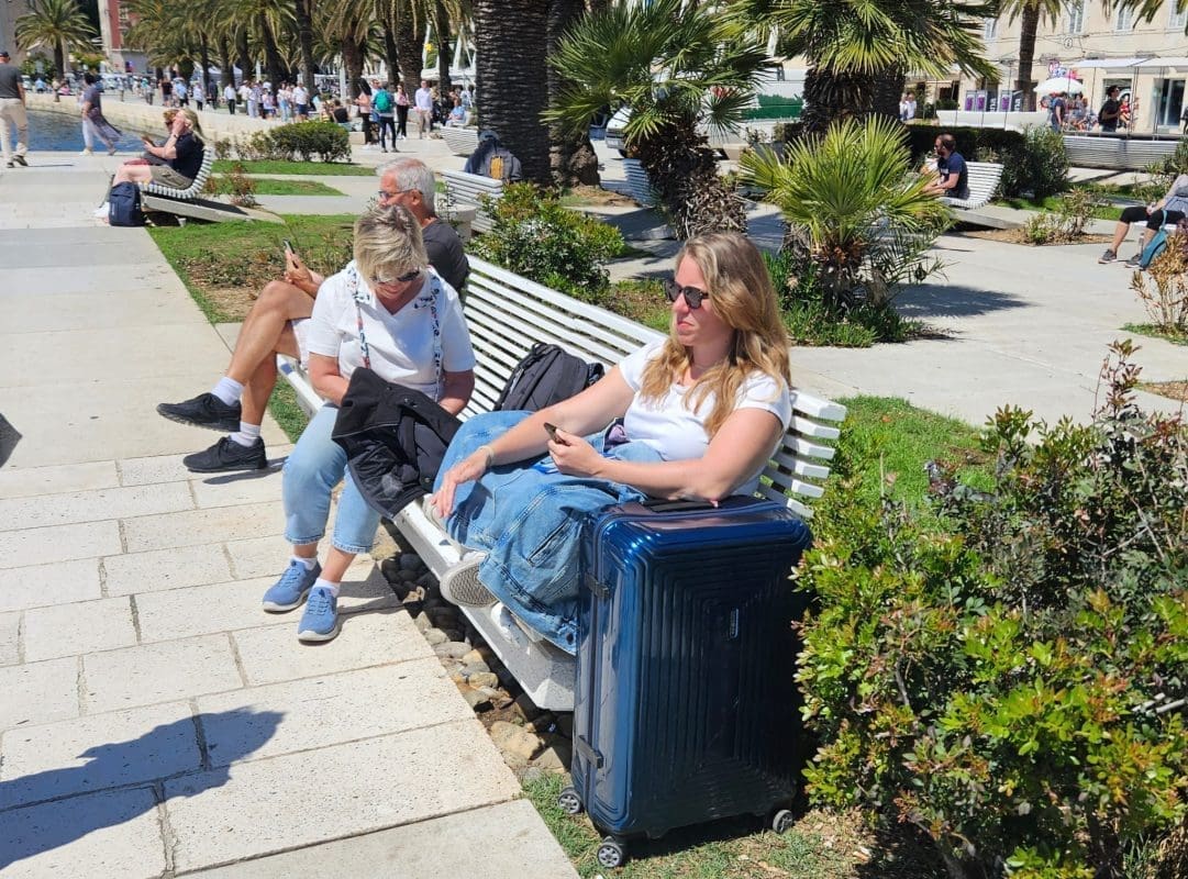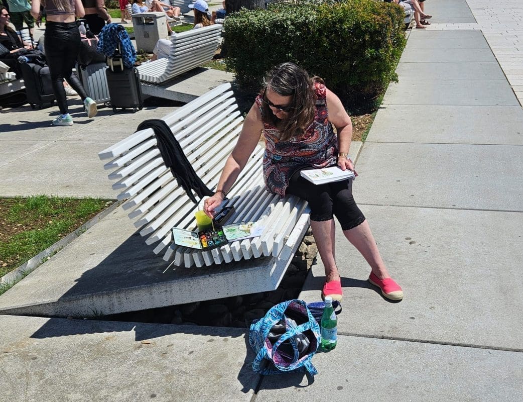 No, dok turisti uživaju u ljepotama Splita, jedna je gospođa sjela na klupu na Rivi i slikala - kist u ruci njen je modni dodatak.