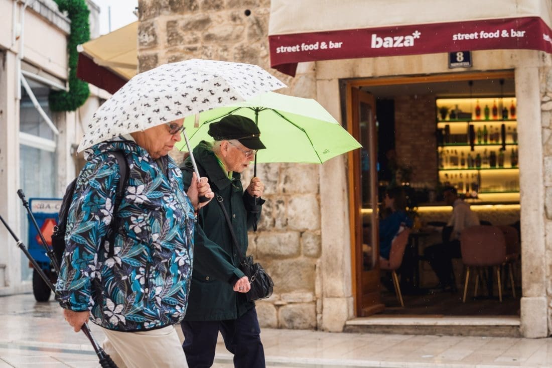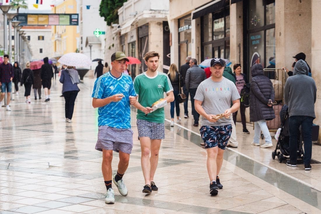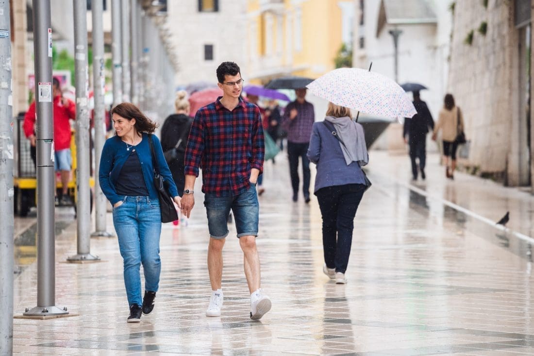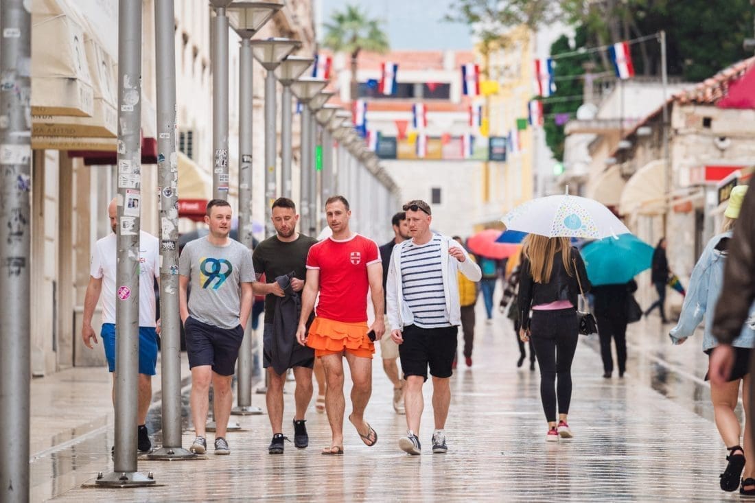 Turistima danas na ruku nije išlo vrijeme jer je slaba kiša padala velik dio dana, no čini se da je to malo koga spriječilo u razgledavanju ulica Splita, osobito uoči sutrašnjeg Dana grada.