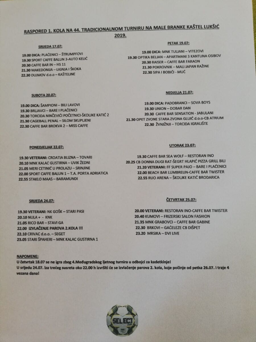 Kao što smo izvjestili nakon konca prijava, na 44. Tradicionalni turnir na male branke Kaštel Lukšić 2019. se prijavilo rekordnih 117 ekipa u glavnom dijelu turnira, koji je dakako bio otvoren za prijave.