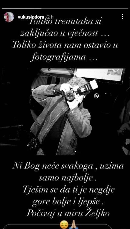 "Toliko trenutaka si zaključao u vječnost, toliko života nam ostavio u fotografijama. Ni Bog neće svakog, uzima samo najbolje. Tješim se da ti je negdje gore bolje i ljepše. Počivaj u miru Željko", napisala je.