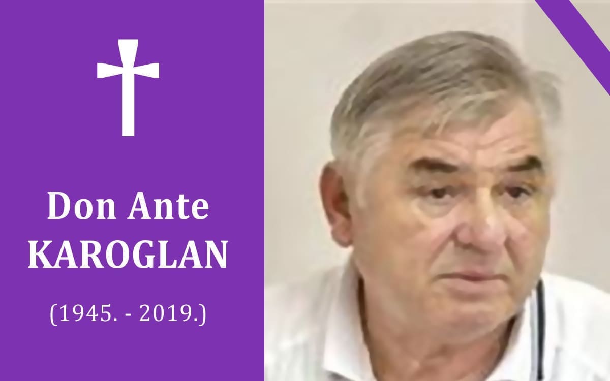 Don Ante Karoglan, svećenik Splitsko-makarske nadbiskupije, preminuo je u četvrtak. Rođen je 1945. godine u Zmijavcima, a za svećenika Splitsko-makarske nadbiskupije zaređen je 1978. godine u Splitu.