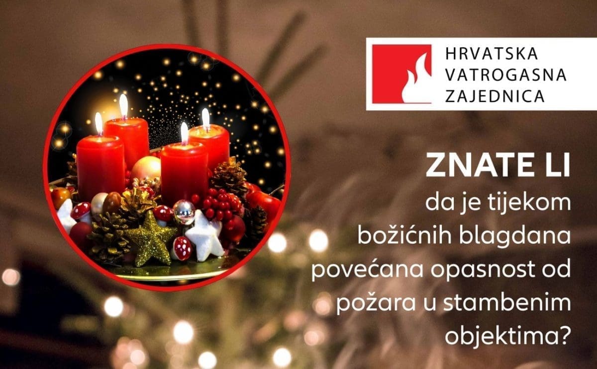 U predstojećem adventskom razdoblju povećava se opasnost od izbijanja požara u stambenim objektima zbog neopreznog korištenja blagdanskih dekoracija, od lampica do svijeća i prskalica. Osobito je važno naglasiti kako suha božićna drvca i razne plastične dekoracije lako gore te se požar brzo može proširiti na okolni namještaj.