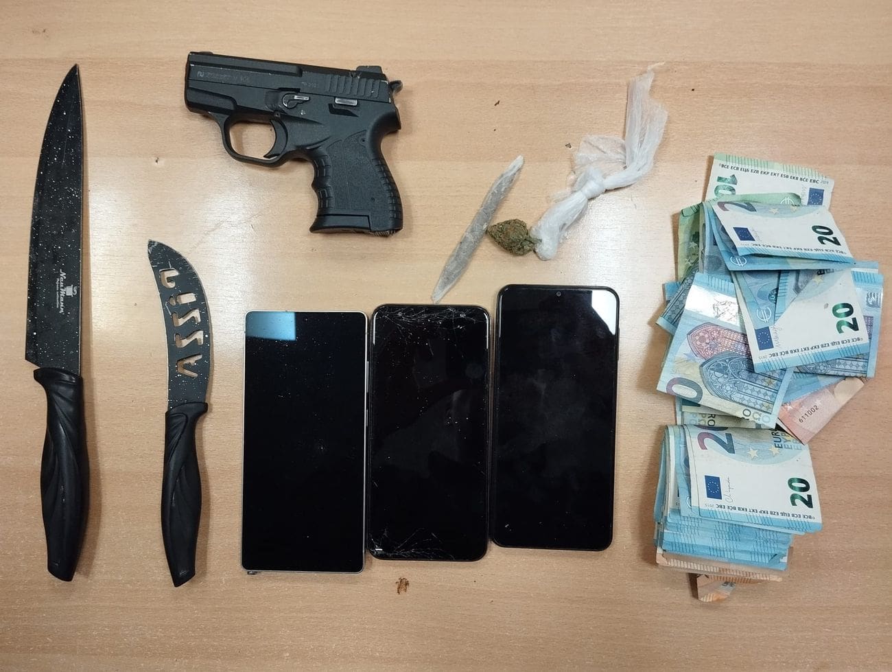 U srijedu, 9. travnja 2025.godine oko 20,45 sati tijekom obavljanja poslova nadzora osoba i vozila u cilju prevencije kaznenih djela i prekršaja, policijski službenici interventne policije postupali su prema 42-godišnjem muškarcu za kojeg je utvrđeno da posjeduje drogu, plinski pištolj i dva noža.