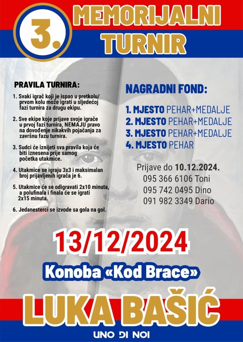 Turnir se organizira u čast Luke Bašića, a svi zaljubljenici u nogomet i dobru zabavu pozvani su da se uključe u ovogodišnje izdanje. Prijave za sudjelovanje po ekipi iznose 60 €, a više informacija o prijavama, nagradama i svim detaljima bit će objavljeno uskoro. Nagradni fond, kao i prethodnih godina, bit će postavljen naknadno.