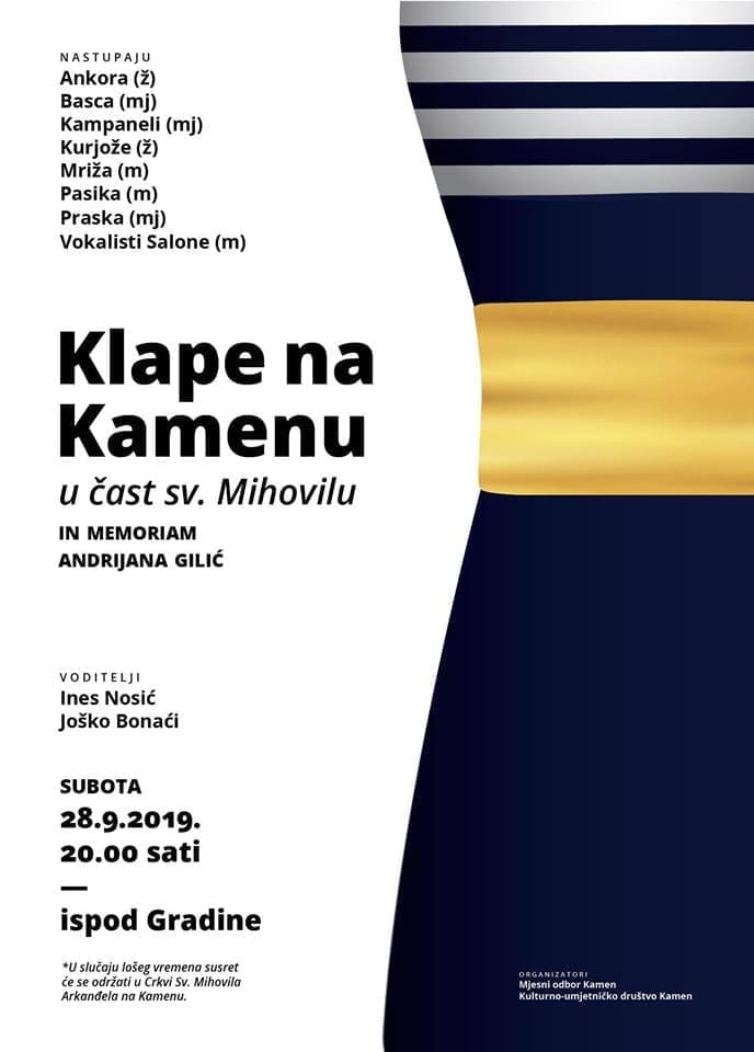 - Ovogodišnji susret posvetili smo prerano preminuloj Andrijani Gilić koja je kao članica klape Kurjože i predsjednica Kulturno-umjetničkog društva Kamen sudjelovala u organizaciji svih dosadašnjih Susreta klapa na Kamenu.