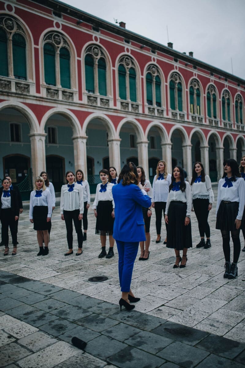 Sam zbor osnovan je u ožujku 2016. godine, a čine ga studenti svih sastavnica splitskog sveučilišta. Trenutno broji 35 aktivnih članova. Iako mu je glavna zadaća da uveličava sveučilišne manifestacije i promocije, zbor je od samog početka znatno proširio svoje glazbene domete brojnim nastupima van sveučilišta te čestim suradnjama s domaćim i stranim zborovima. Anamarija Tadin dirigira zborom od osnutka.