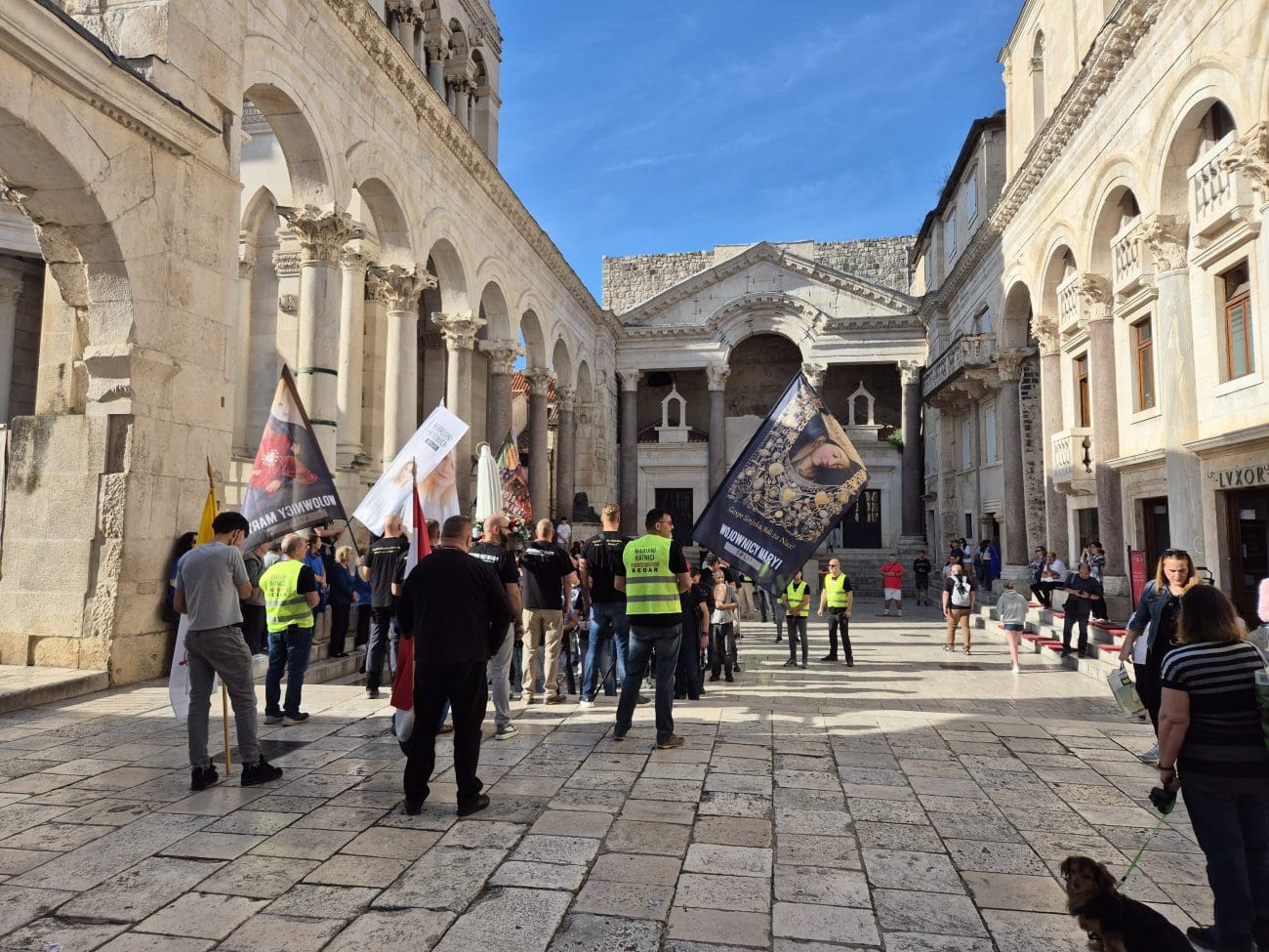 Kao što je to već uobičajeno svake prve subote u mjesecu, i danas su se na Peristilu okupili molitelji koji su u 8:30 započeli polusatnu molitvu. Iako u drugim gradovima svakog mjeseca bude i prosvjednika, u Splitu je uglavnom mirno. Često imaju podršku i žena koje na Peristilu dođu moliti krunicu.